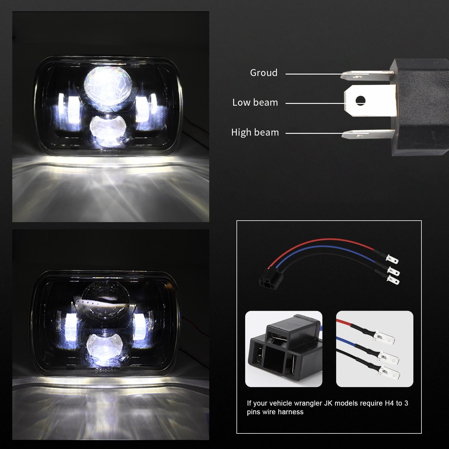 • 1 x 7 Inch 5X7 / 7X6 H4 Dc 9V – 30V 3500Lm 35W Car Square Shape Led Headlight Lamps For Jeep Wrangler
