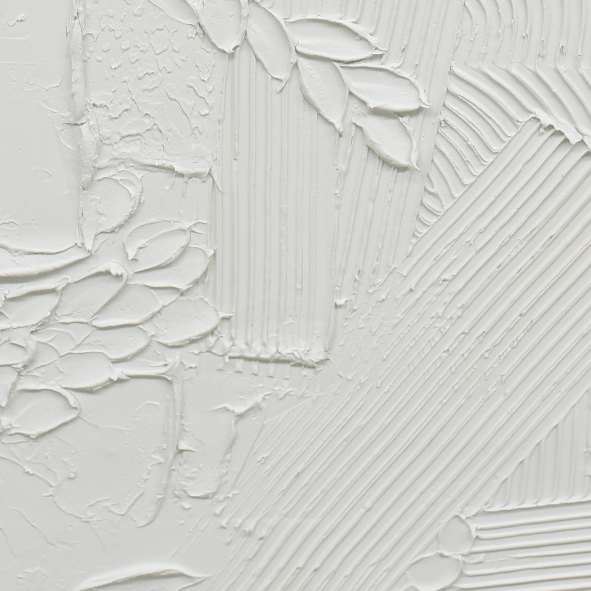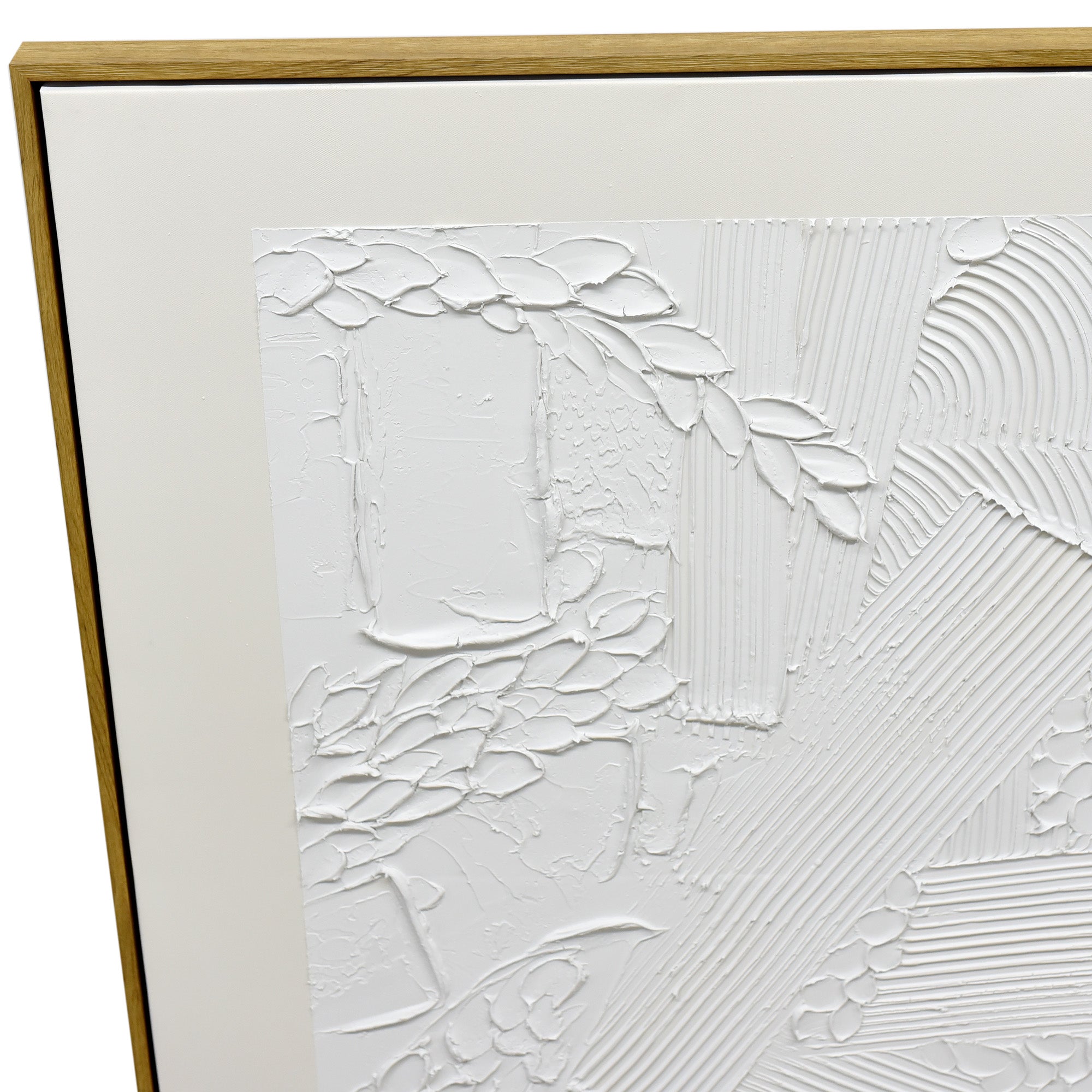 “Plaster Panorama” is a distinctively crafted 70cm x 90cm artwork, embodying the raw beauty of hand-applied textures. At its core, thick strokes and grooves of pristine white plaster dance across the canvas in a symphony of chaotic yet harmonious motion. Each textured element tells a story, revealing the meticulous hand of the artist and the unpredictability of the medium. This captivating array of textures is then beautifully framed by a beige border, offering a stark contrast to the white and adding an air of sophistication. Set within a dark wood frame, “Plaster Panorama” serves as a testament to the beauty of abstract art and the unique allure of plaster on canvas, bringing a tactile dimension to any space it graces.