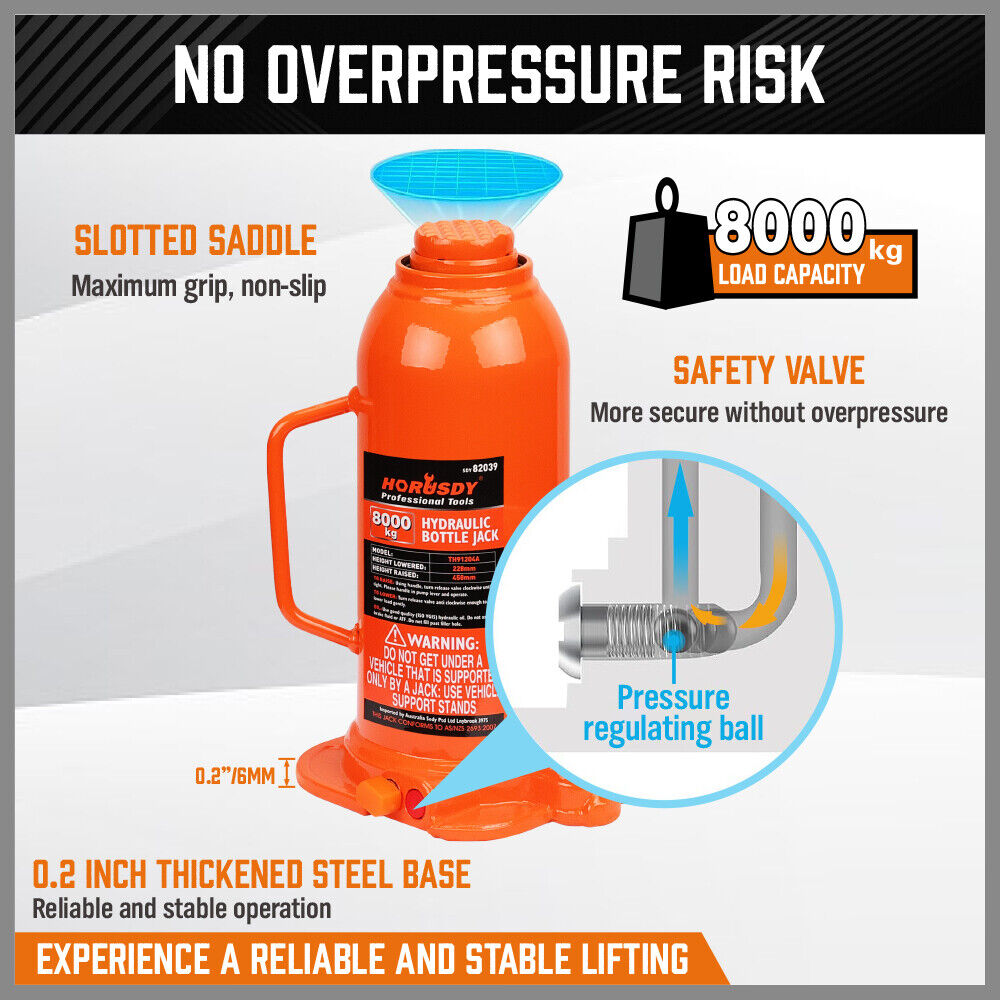 8-Ton (16,000 LBs) Hydraulic Bottle Jack Heavy Duty Car Lifter with Safety Valve