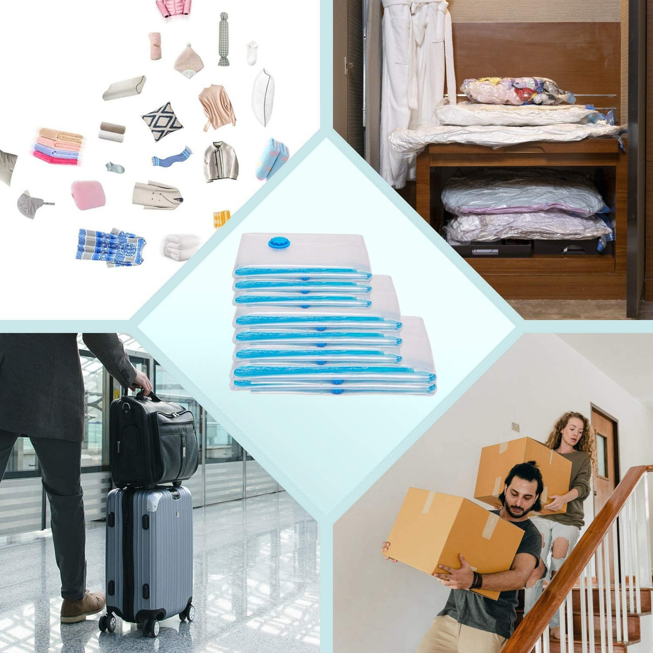 9 Pack Space Saver Vacuum Seal Storage Bag Kit, 2 Large, 5 Medium & 2 Small