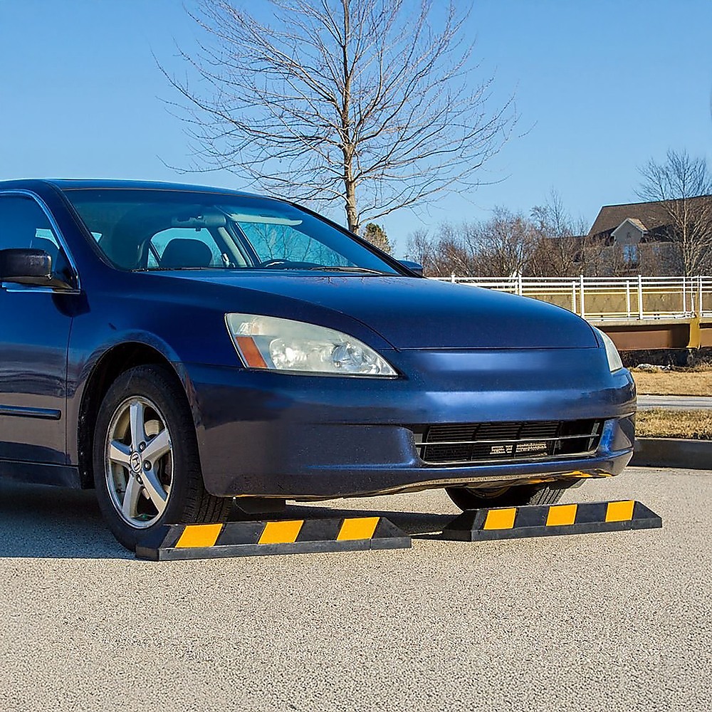 While concrete will crumble, chip, crack, and corrode over the years, this heavy-duty rubber construction will keep on doing its jobeven during the harshest weather conditions. It even resists petrol, UV light, moisture, and oil damage as it protects. Unlike concrete, you can use this parking curb in temporary parking spots, such as at events or during remodelling. And, in contrast to concrete parking curbs, this one won't end up in a landfill when you need to redo the parking lot. And, since it's crafted from eco-friendly, recycled rubber, you're helping to reuse the earth's precious resources.