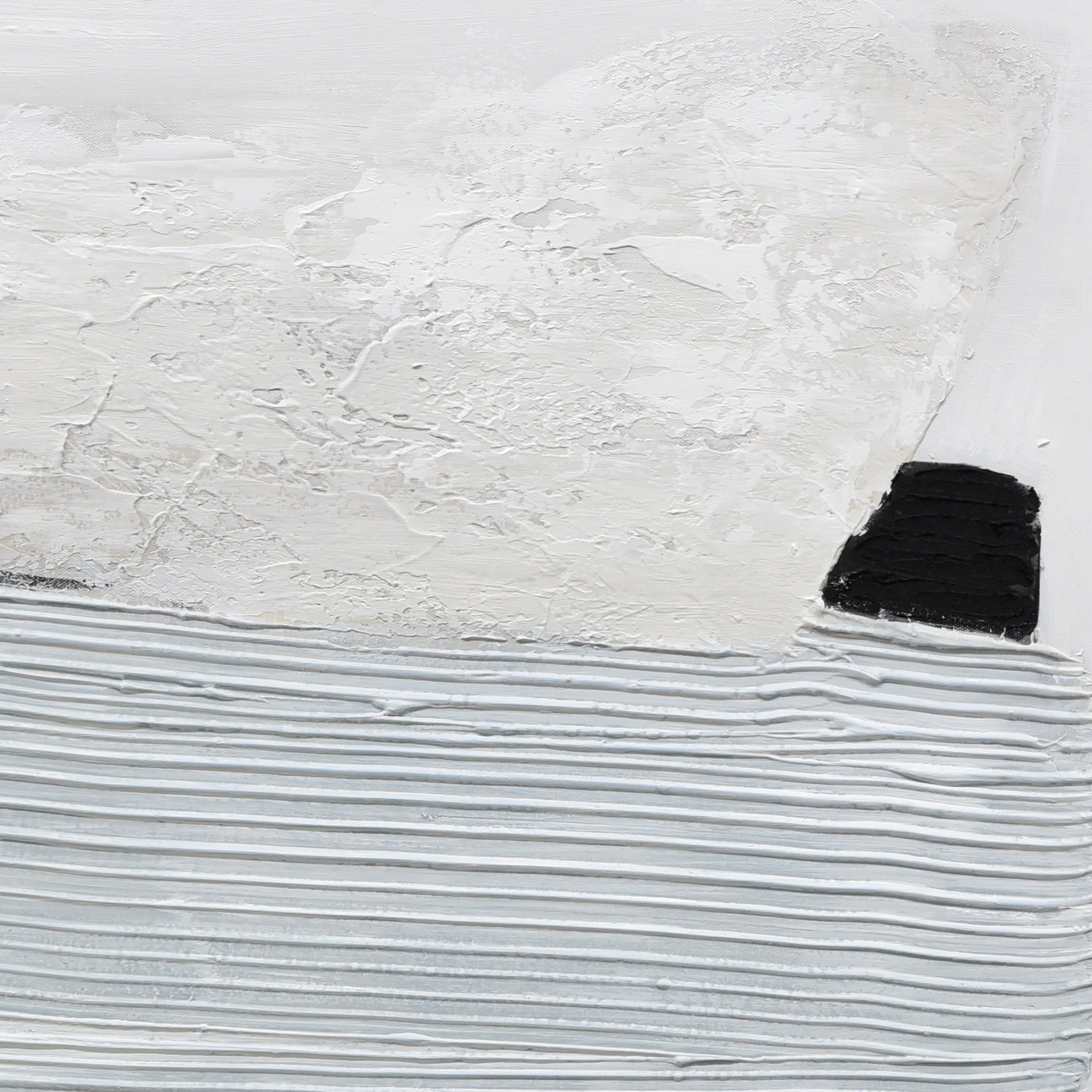 “Vibes of Vellichor” isn’t merely art—it’s an attitude. Its thick textures and playful contrasts set the stage for a visual dance, encapsulating the vibrancy and dynamism of modern life. Standing before it, one is compelled to groove to its rhythm, to muse, and to lose oneself in its funky narrative. Front and center, a prominent white dash pops against the canvas, acting as a contemporary guide through the labyrinth of hues. Whimsical baby blue grooves, both circular and linear, pirouette around this dash, channeling vibes of cool summer breezes and ocean waves. Moodier shades of grey and deep charcoal layer in, adding complexity and a hint of urban chic. The piece is masterfully unified by a dashing line of gold, a gleaming streak that screams modern luxury.