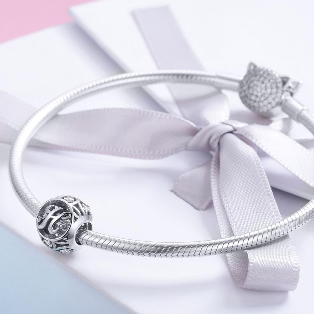 • 1 x 925 Sterling Silver 26 English Letter Beads For Diy Bracelets Necklaces Style – H