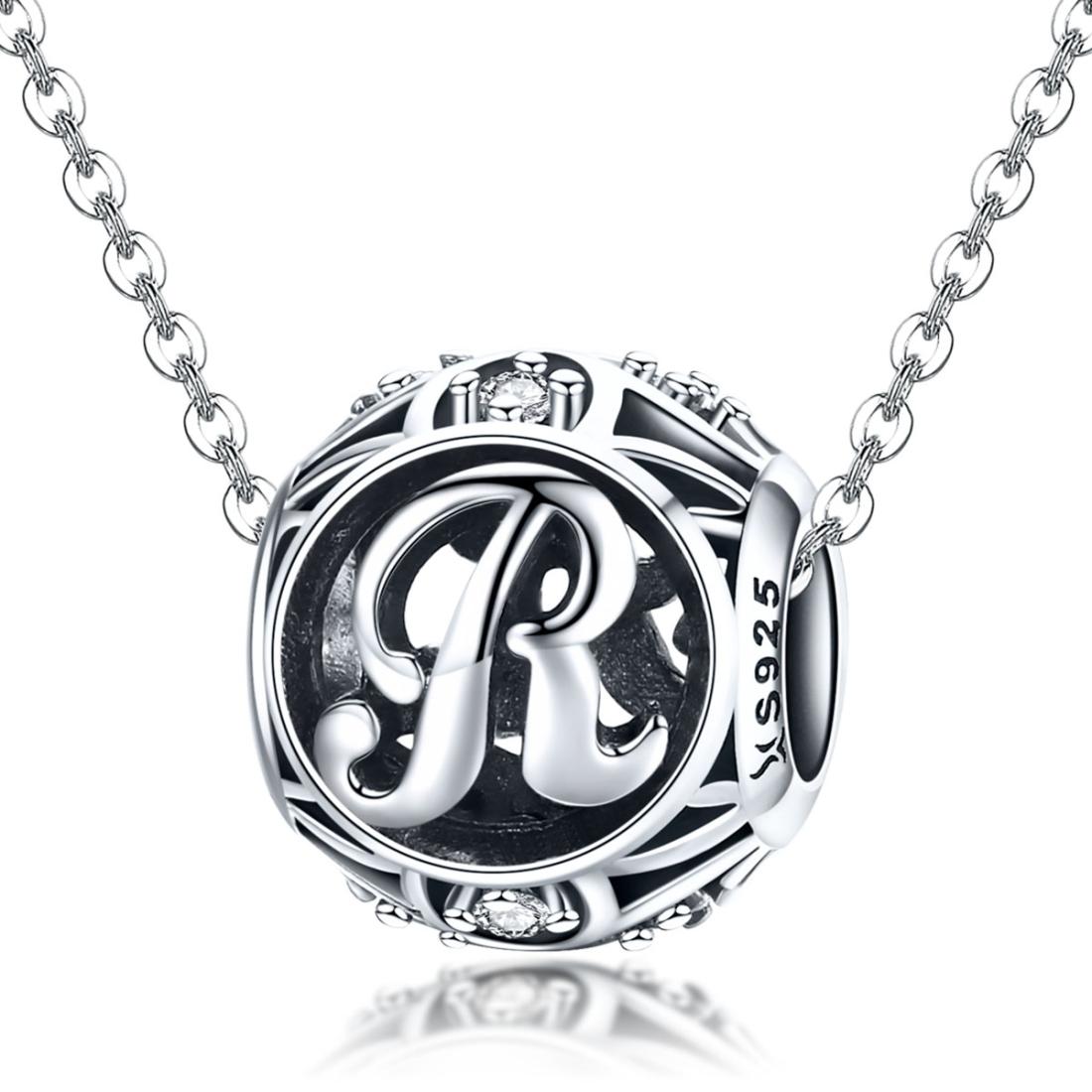 925 Sterling Silver 26 English Letter Beads For Diy Bracelets & Necklaces Style – R