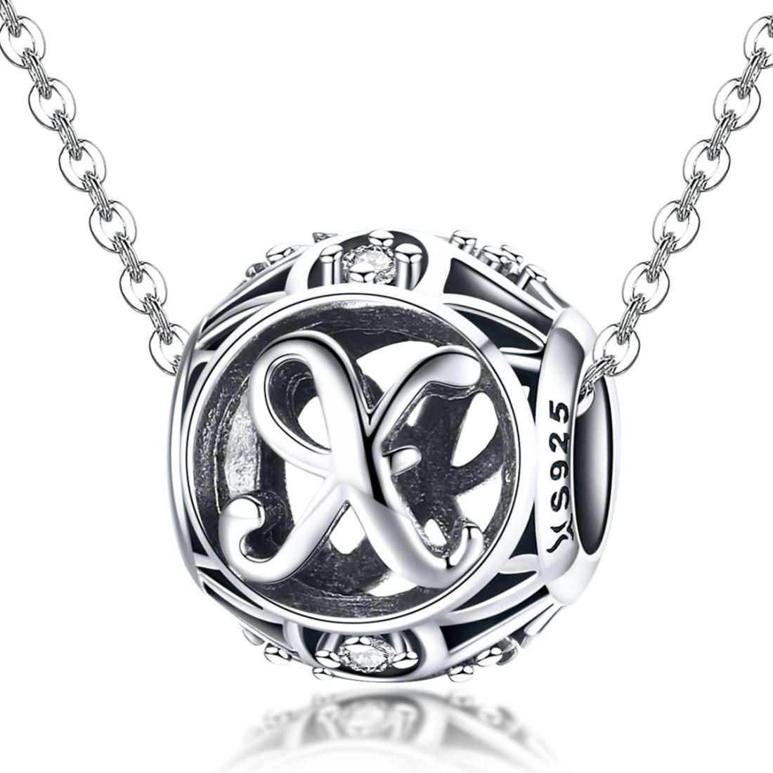 925 Sterling Silver 26 English Letter Beads For Diy Bracelets & Necklaces Style – X