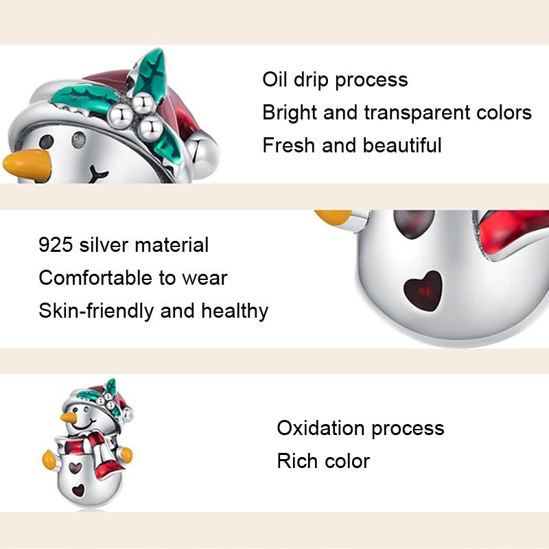925 Sterling Silver Christmas Snowman Bracelet Beads