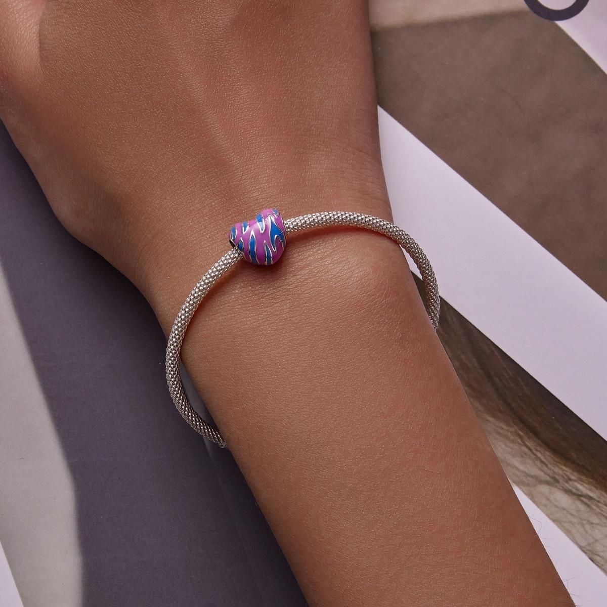 925 Sterling Silver Contrast Heart Beads For Diy Bracelets & Necklaces