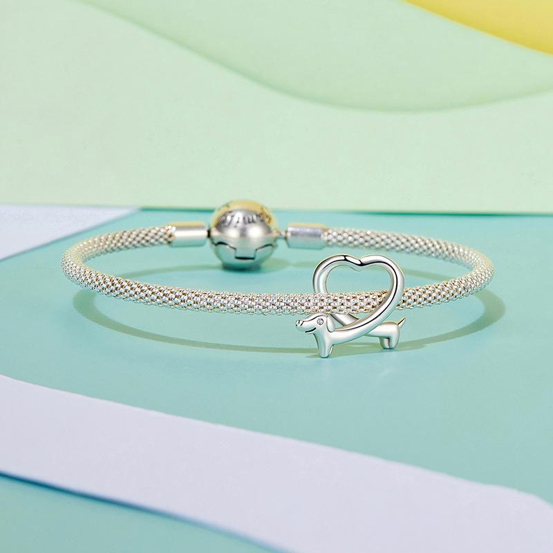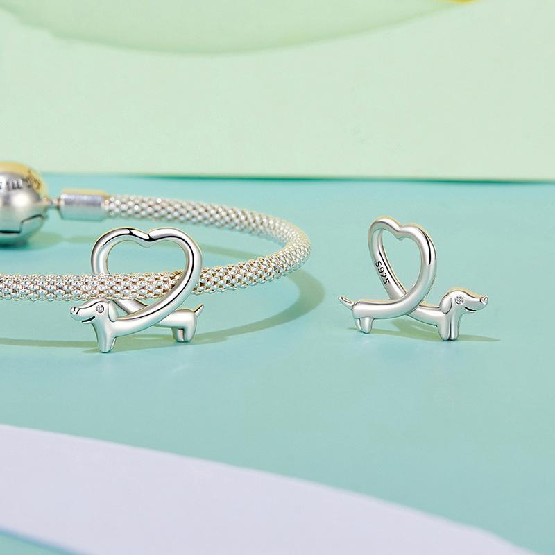 925 Sterling Silver Dachshund Bead Animal Accessory