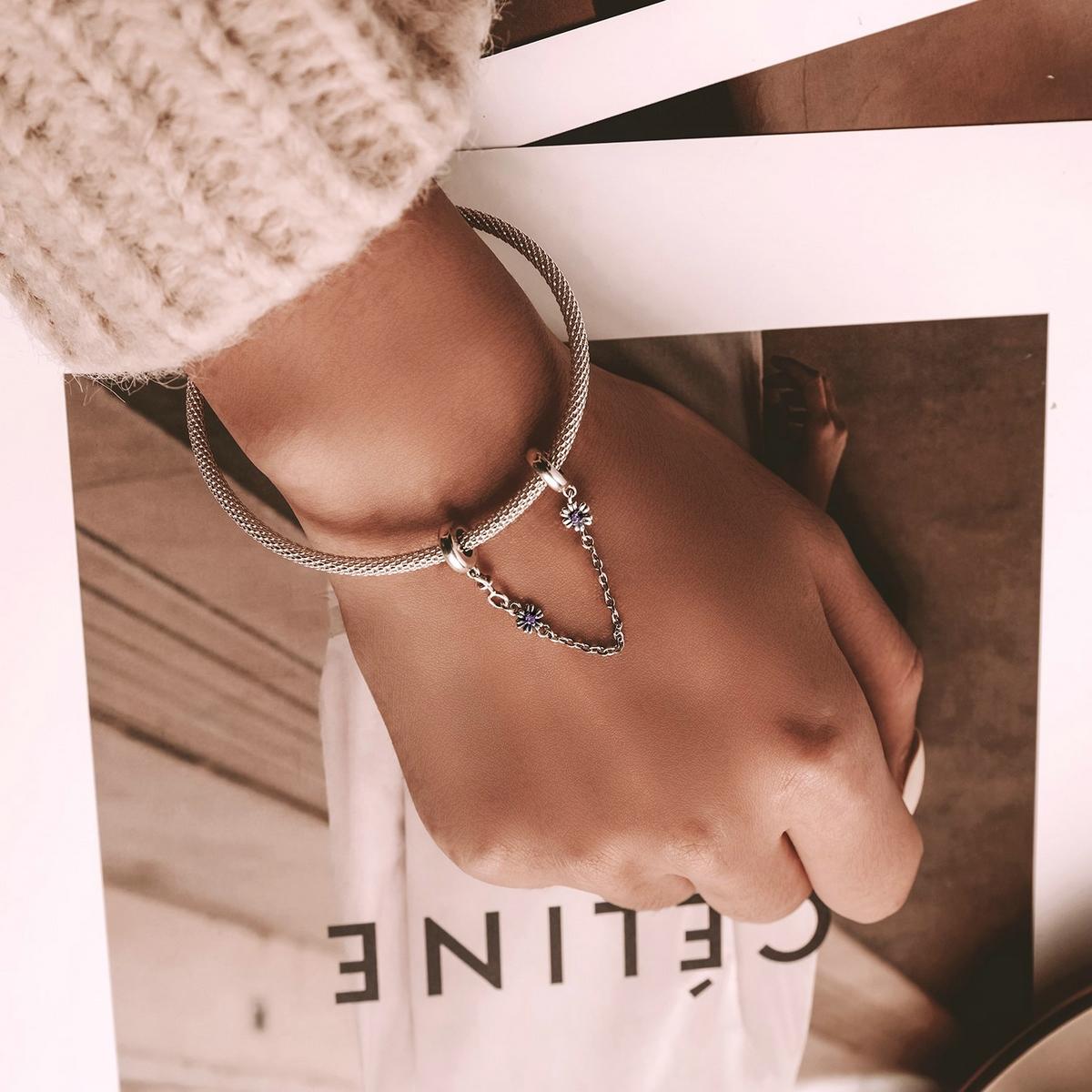 • 1 x 925 Sterling Silver Flower Safety Chain For Diy Bracelets Necklaces
