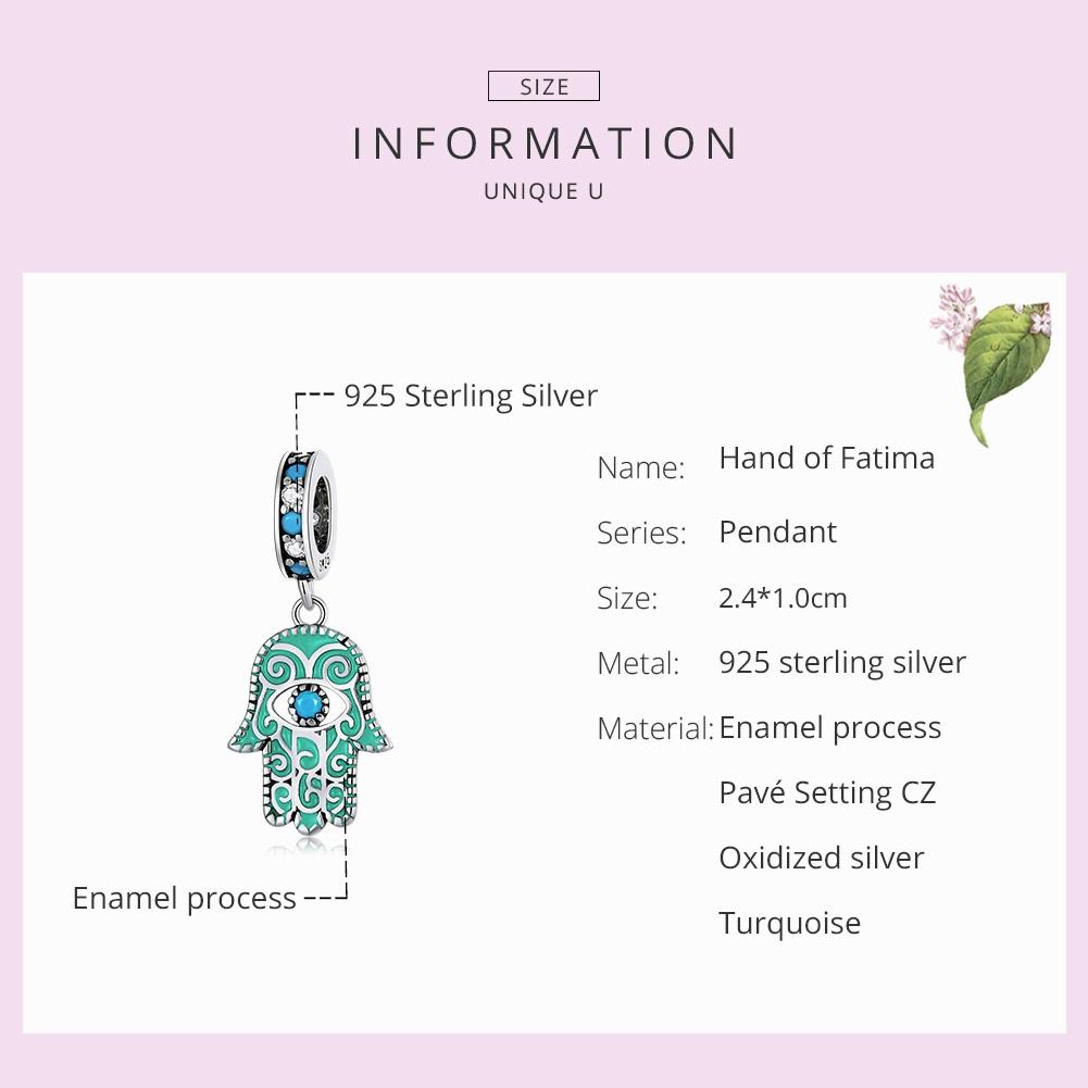 925 Sterling Silver Hand Of Fatima Pendant For Diy Bracelets & Necklaces