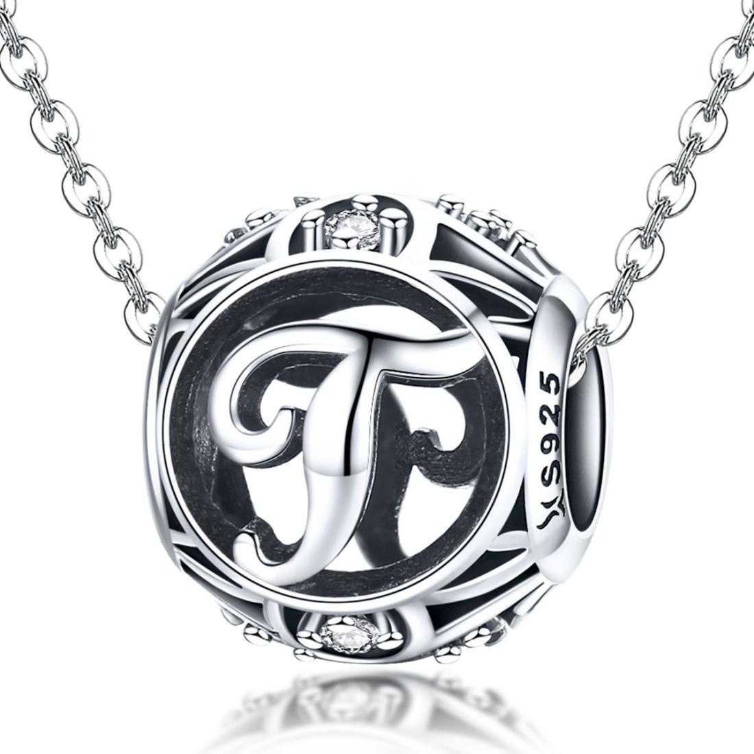 925 Sterling Silver Letter Beads For Diy Bracelets & Necklaces Style – T