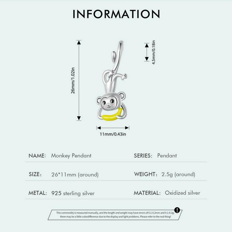 925 Sterling Silver Monkey Pendant For Diy Bracelets