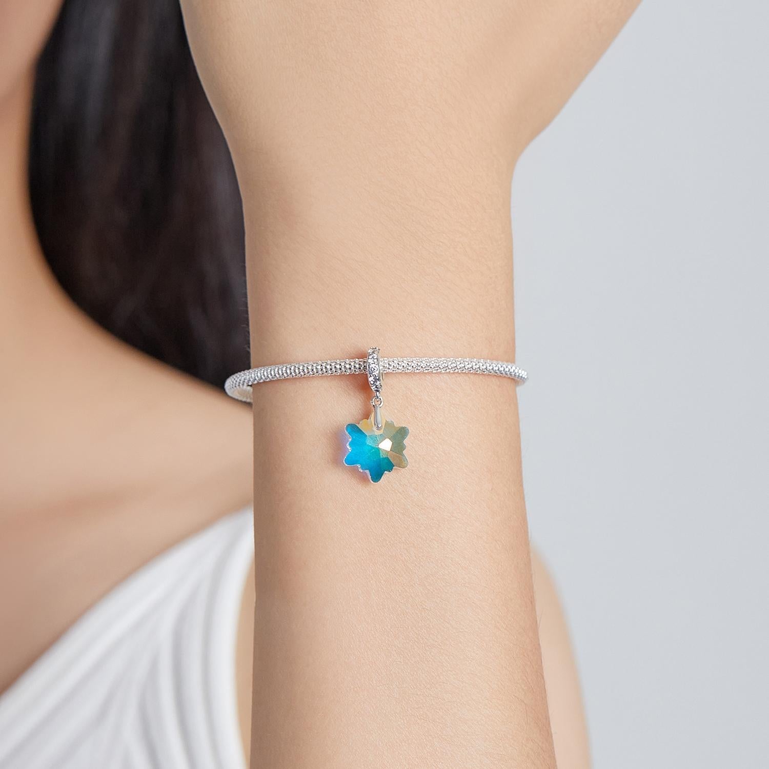 • 1 x 925 Sterling Silver Sparkling Snowflake Pendant For Diy Bracelets Necklaces