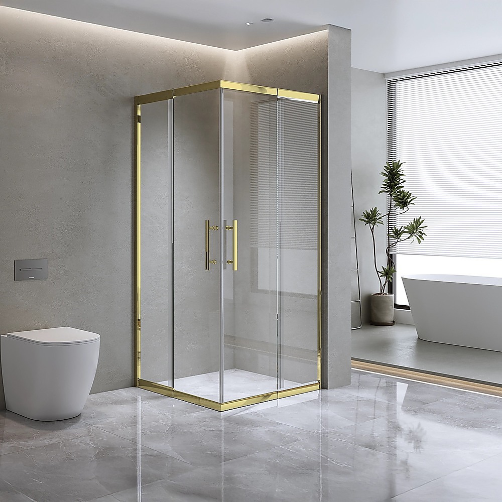 Adjustable 900x1000mm Double Sliding Door Glass Shower Screen in Gold