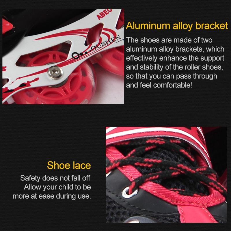 • 1 x Adjustable Full Flash Children Single Four-Wheel Roller Skating Shoes Set Black – Size S