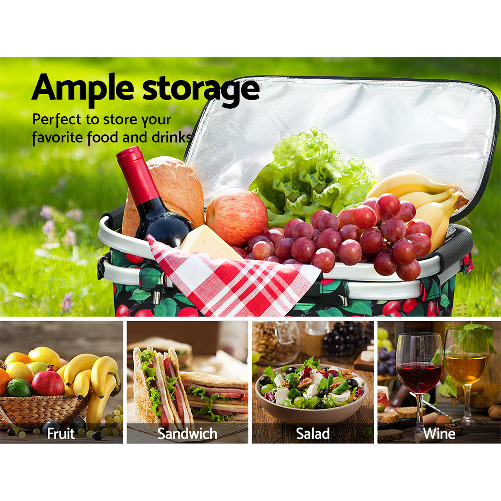 Alfresco Picnic Basket Folding Bag Hamper Insulated Storage Food Cover