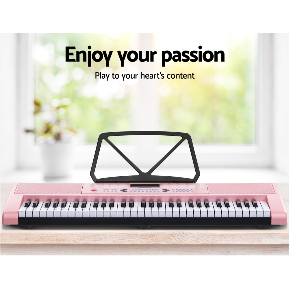 Alpha 61 Keys Electronic Piano Keyboard Digital Electric w/ Stand Stool Pink