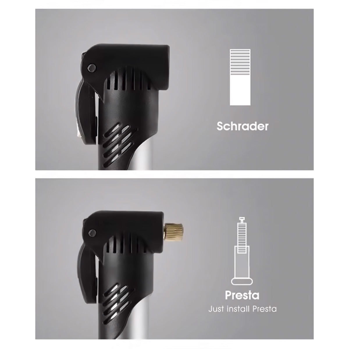 This compact and lightweight mini bicycle pump offers efficient inflation for tyres and sports equipment on the go.Constructed from stainless steel and engineering plastic, it features a telescopic body extending from 8.1in to 13.2in for greater pumping efficiency.Compatible with both Presta and Schrader valves, it is ideal for cyclists, athletes, and travellers needing a reliable and portable air supply.