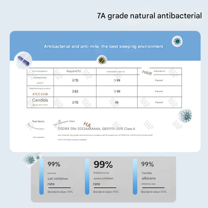 - Antibacterial: 7A level natural antibacterial properties