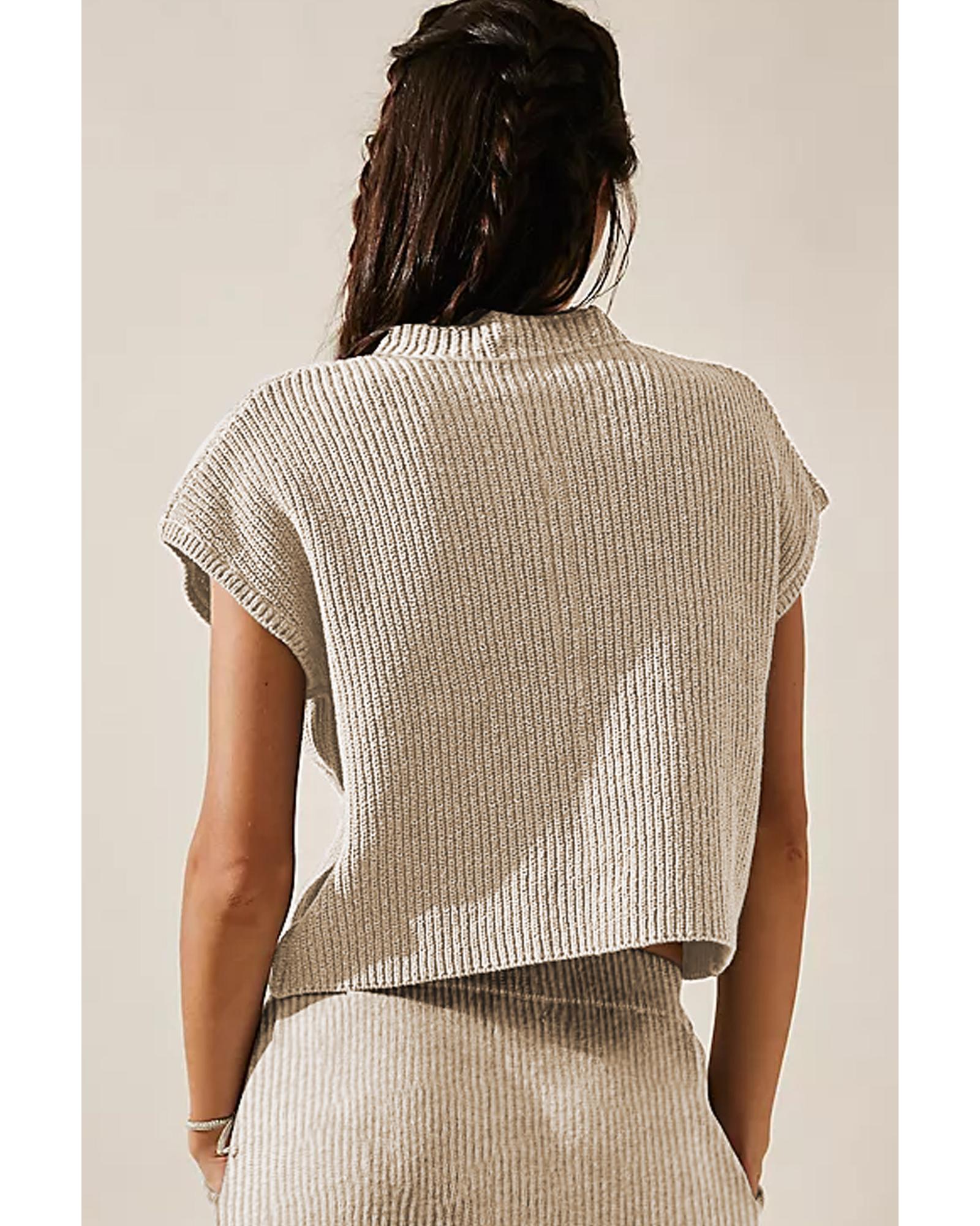 Apricot Chest Pocket V Neck Ribbed Cap Sleeve Sweater – XL