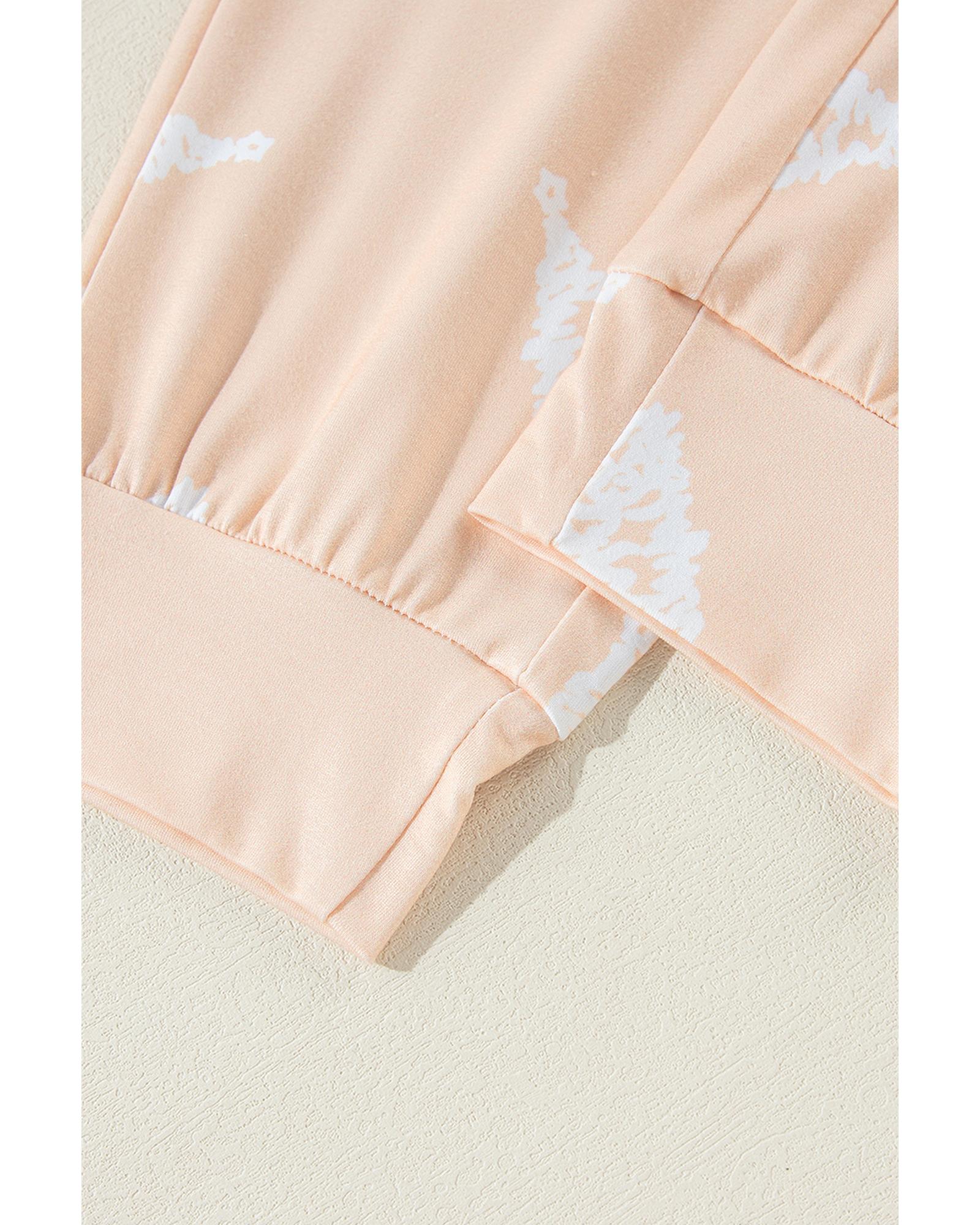 Apricot Christmas Tree Print Loose Fit Two Piece Pajama Set – M