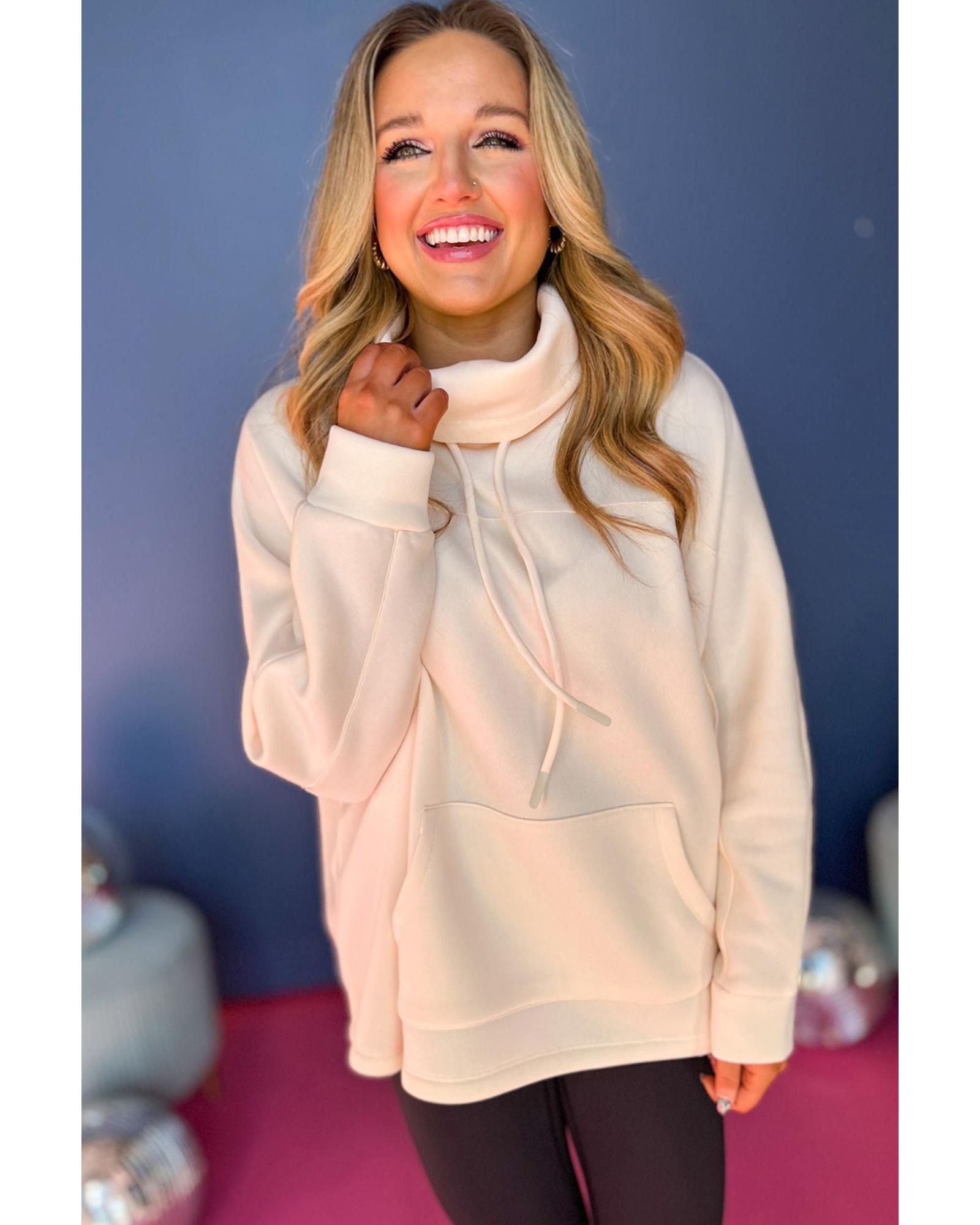 Apricot Drawstring Turtleneck Dolman Sleeve Sweatshirt – S