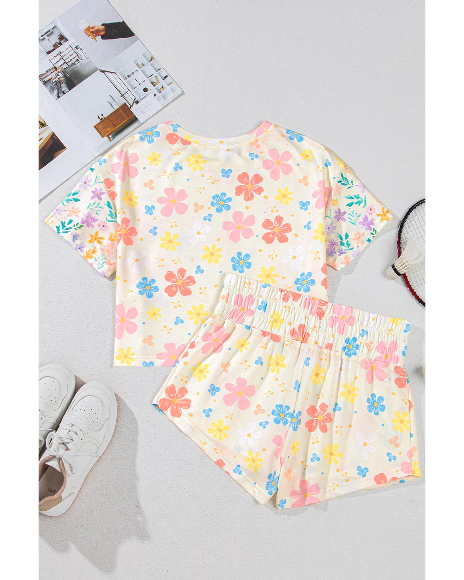Apricot Floral Print Crop Top Wide Leg Short Set – XL