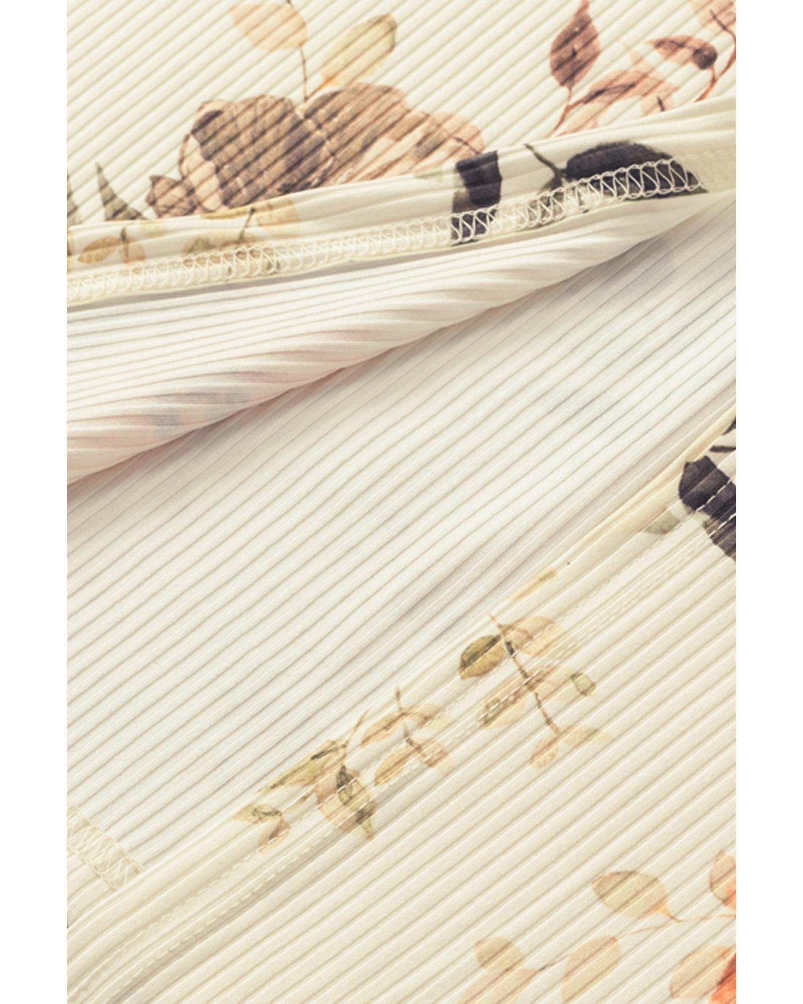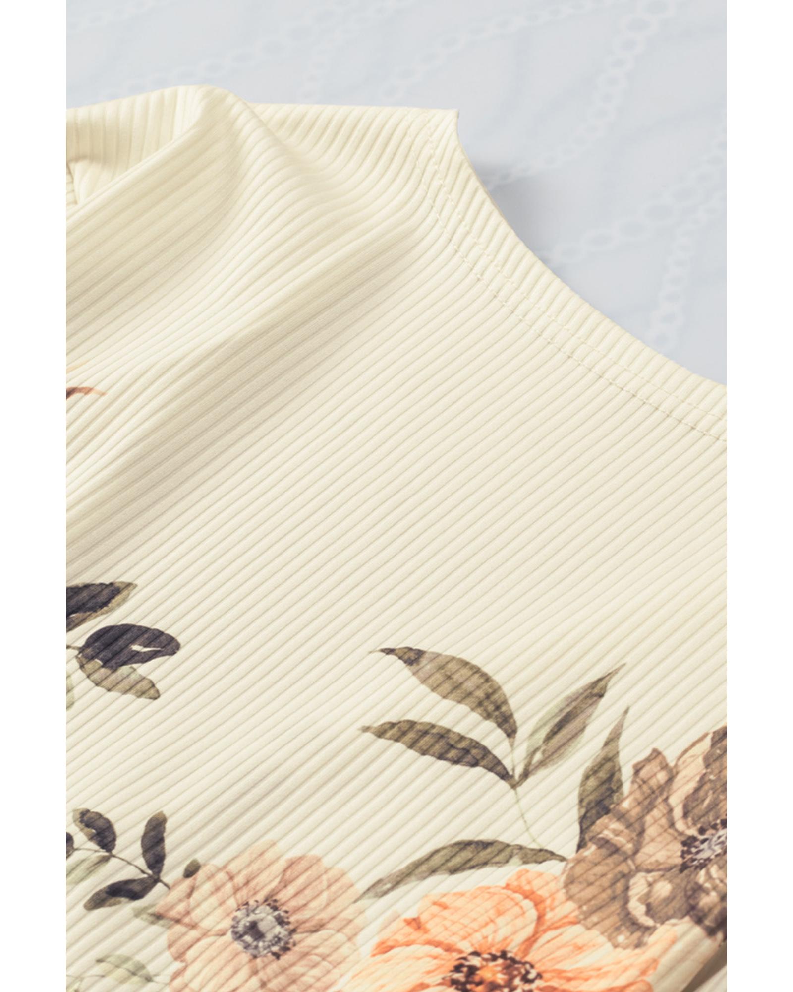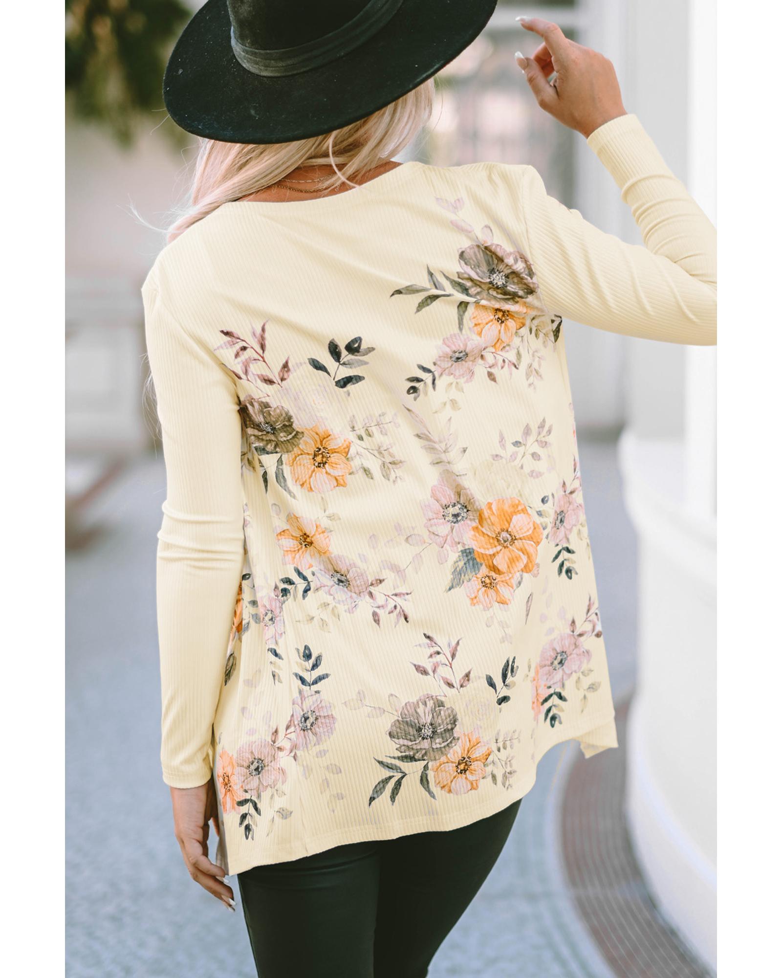 Apricot Floral Print Ribbed Knit Slim Fit Cardigan – M