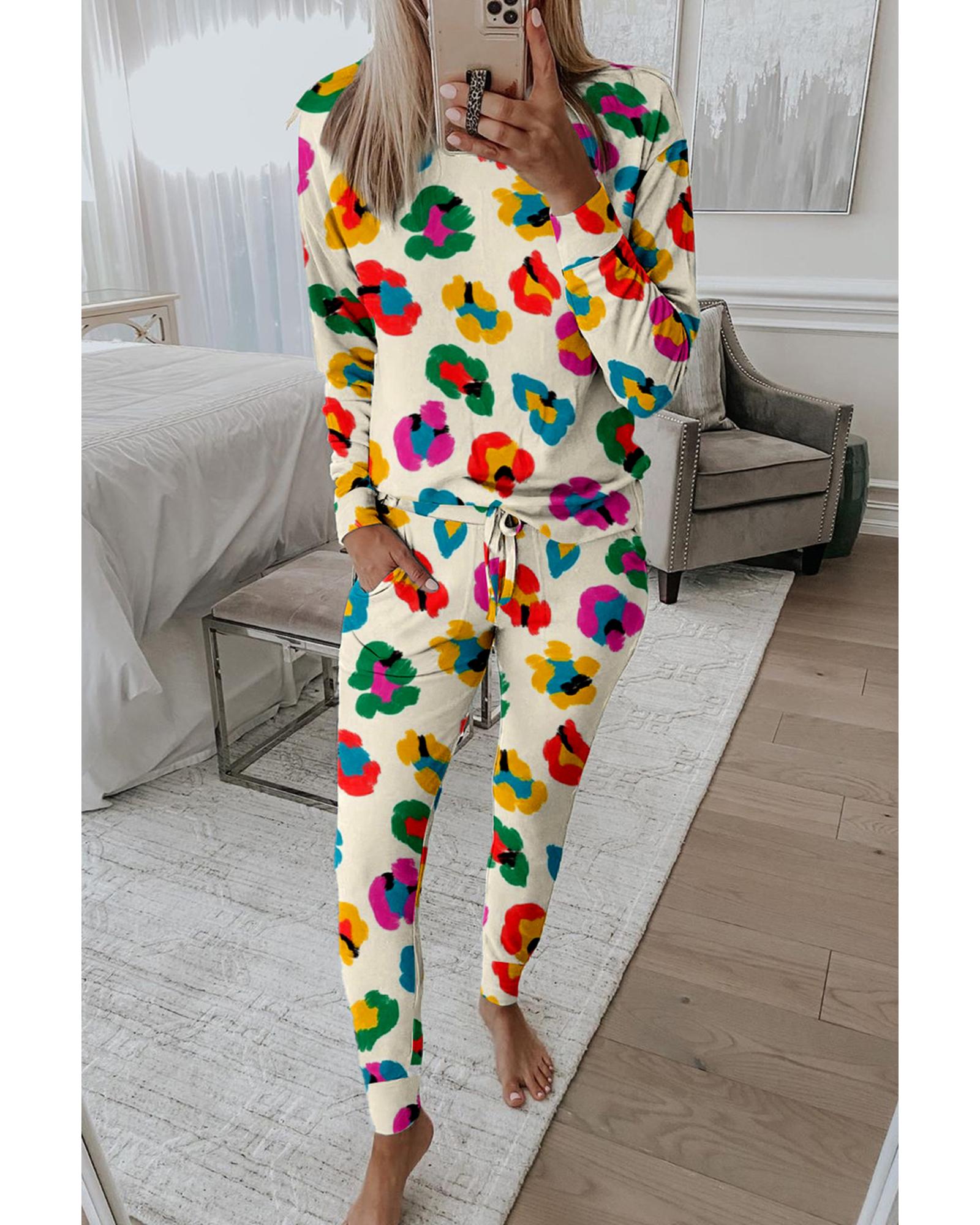 Apricot Leopard Print Long Sleeve Top and Skinny Pants Lounge Set – XL
