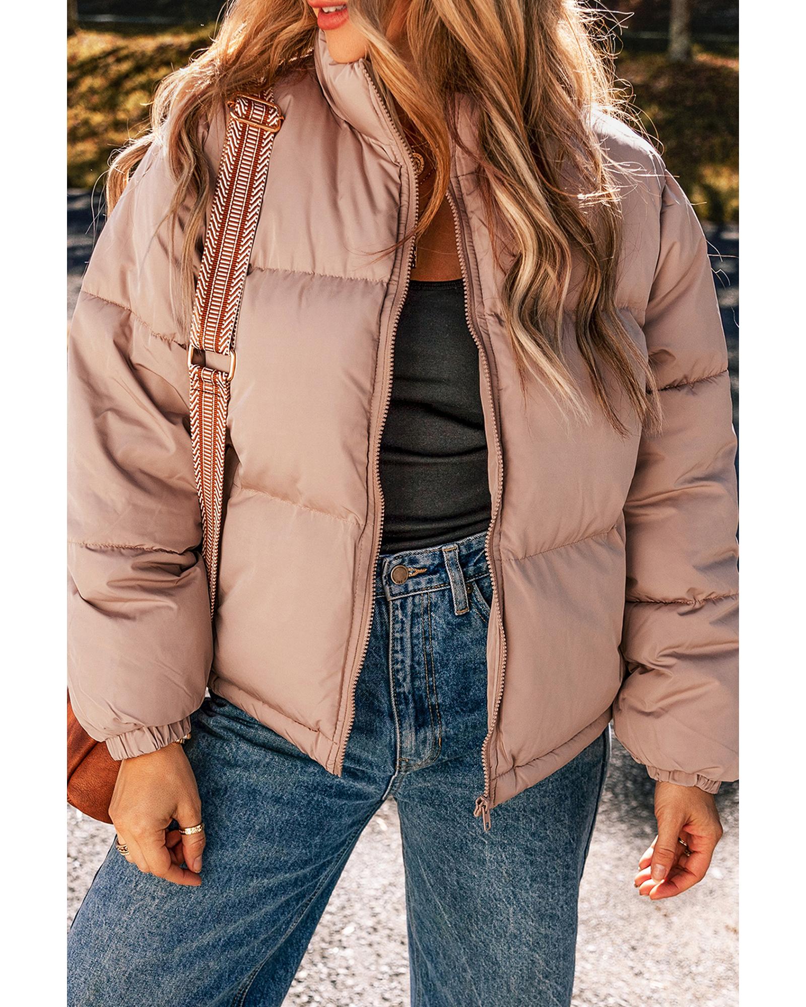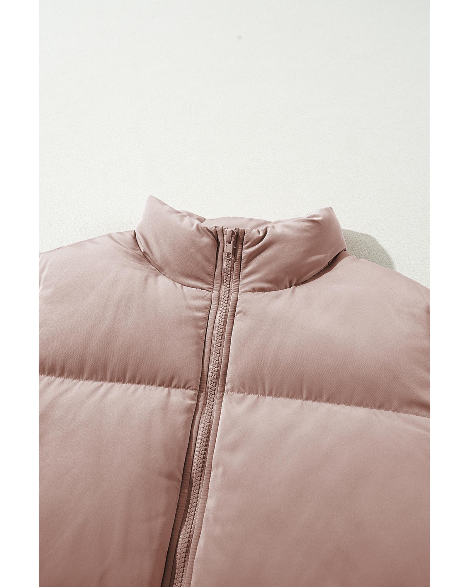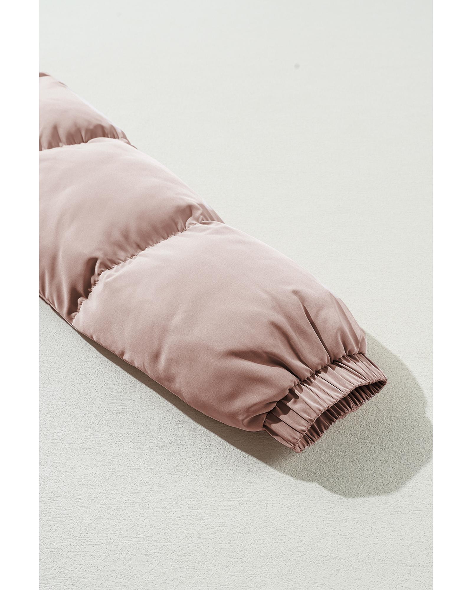 - Apricot Pink Full Zipper Quilted Puffer Jacket