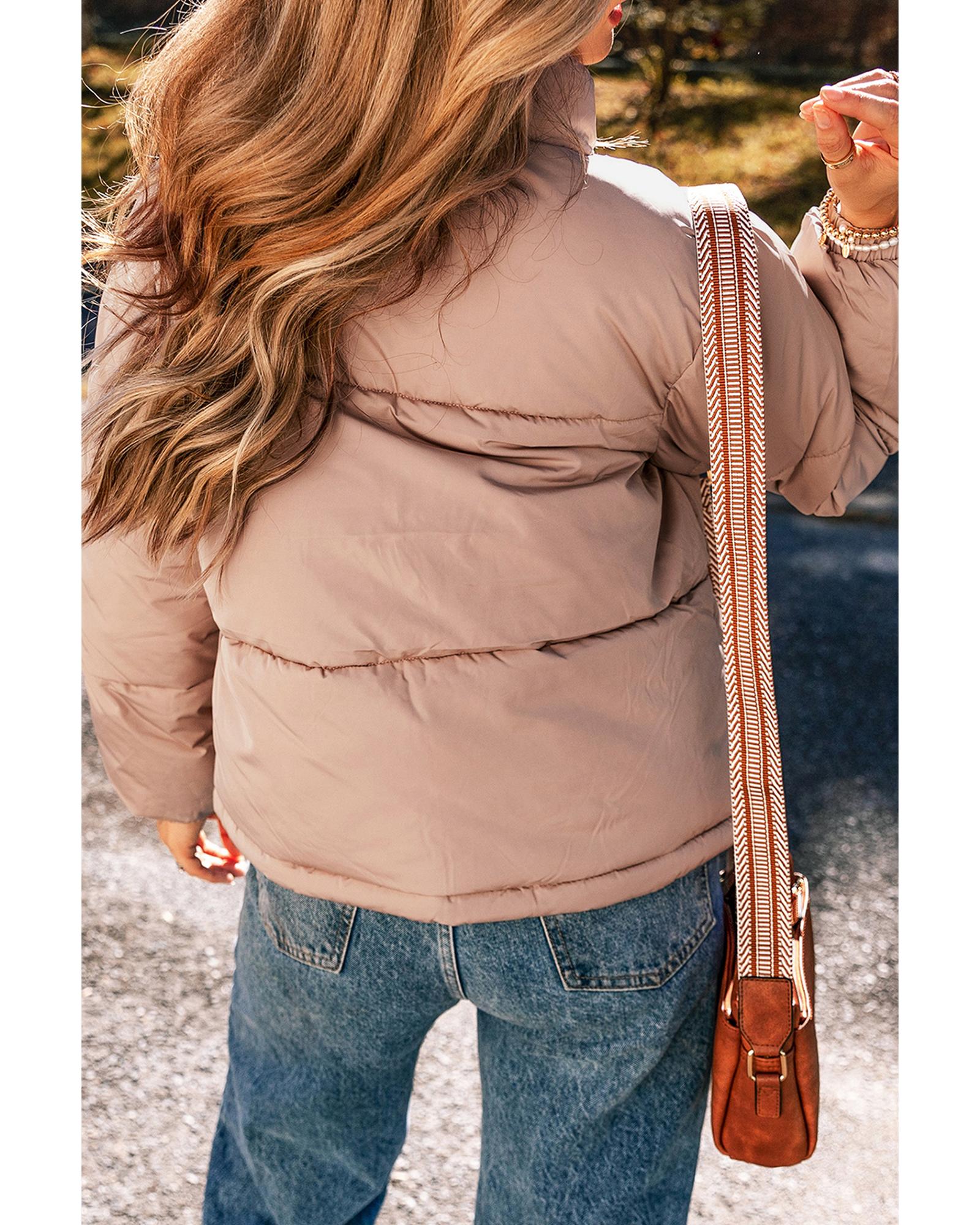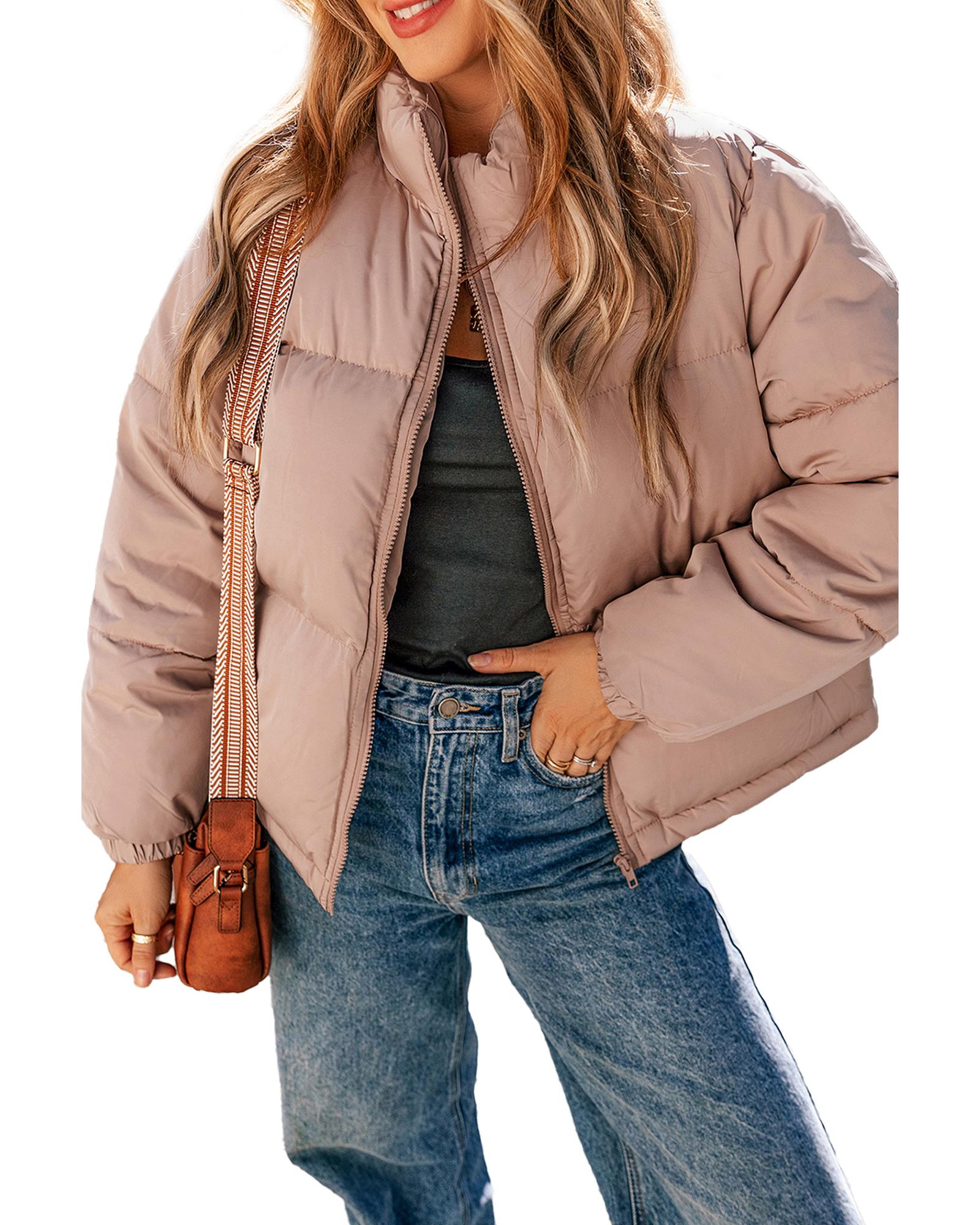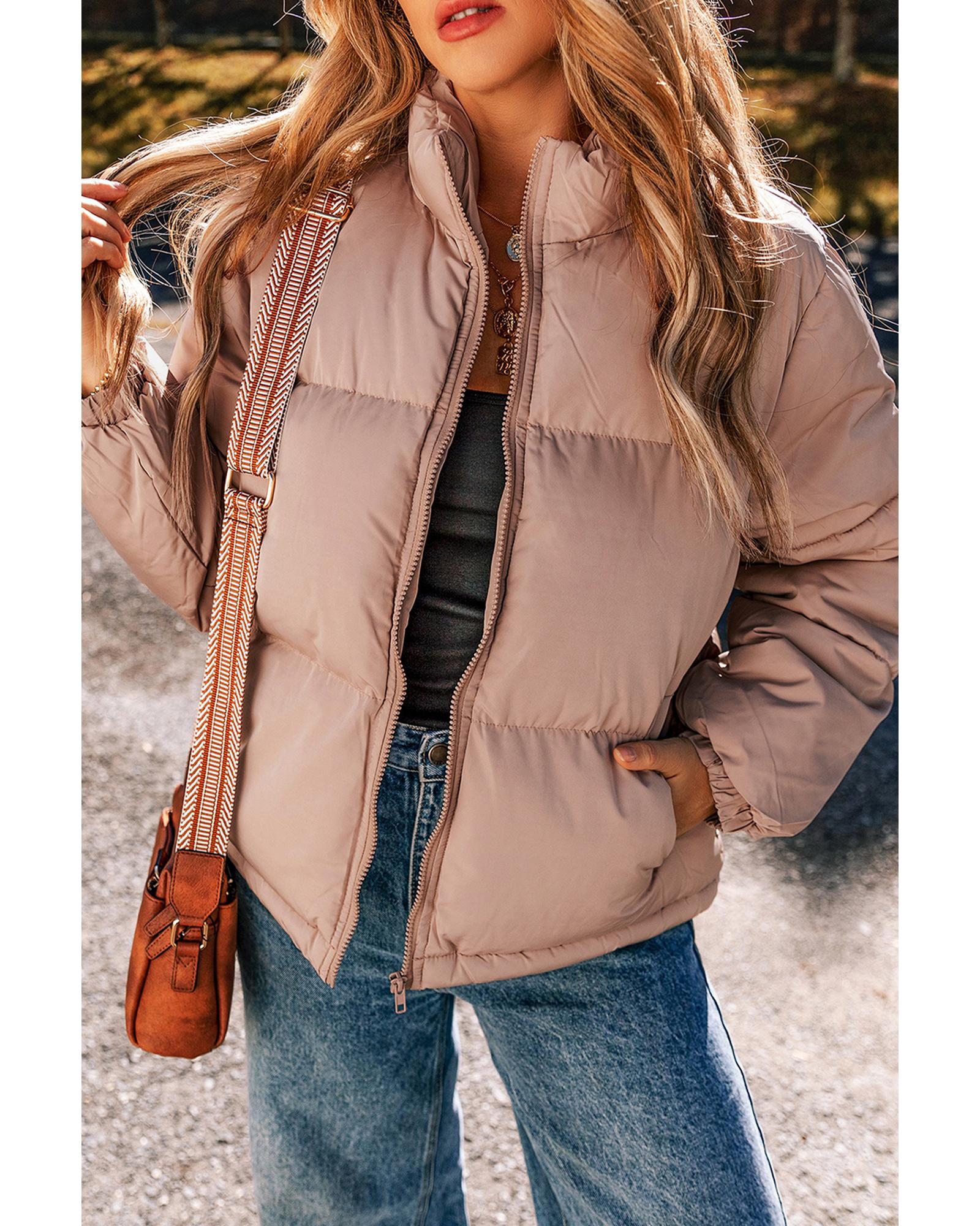 - Apricot Pink Full Zipper Quilted Puffer Jacket