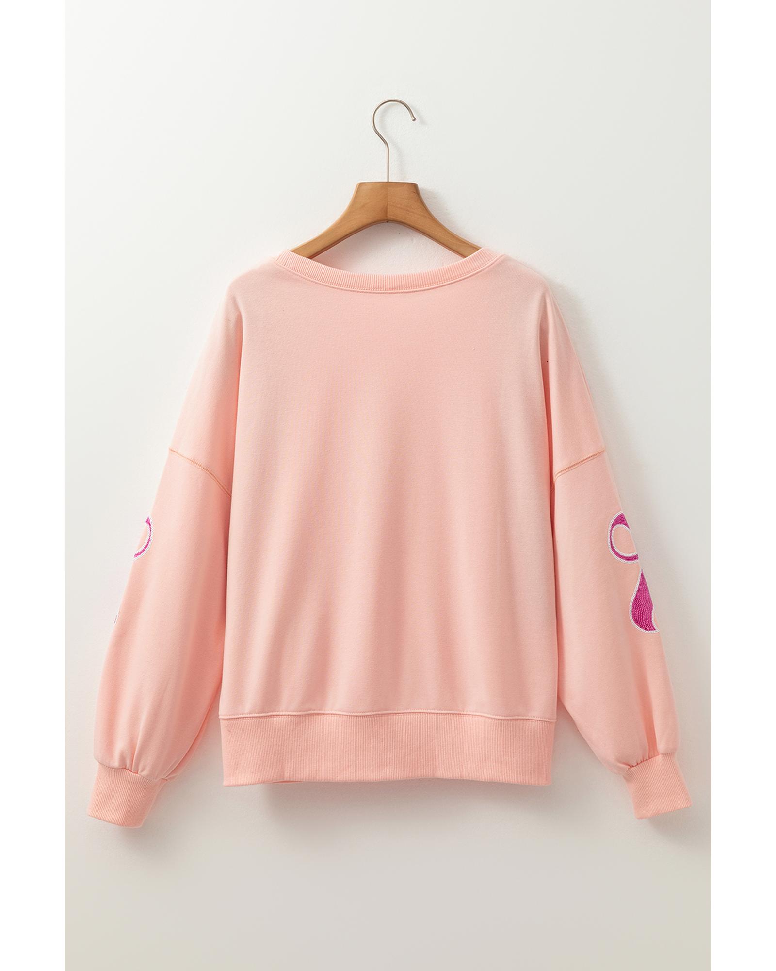 Apricot Pink Sequined Bowknot Drop Shoulder Oversized Sweatshirt – M