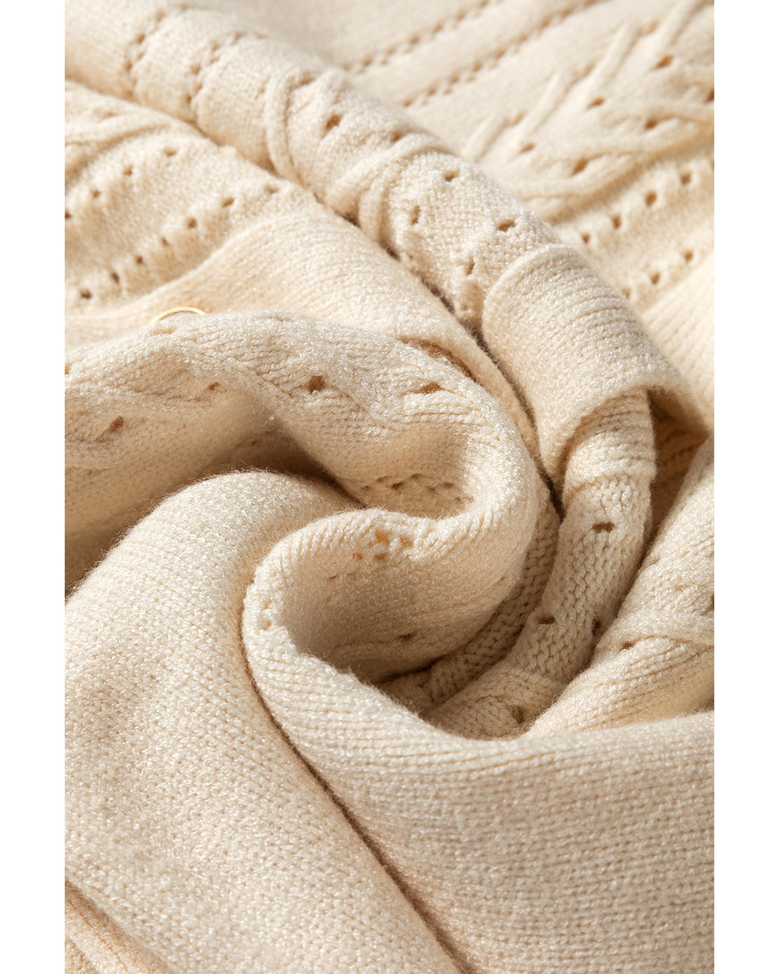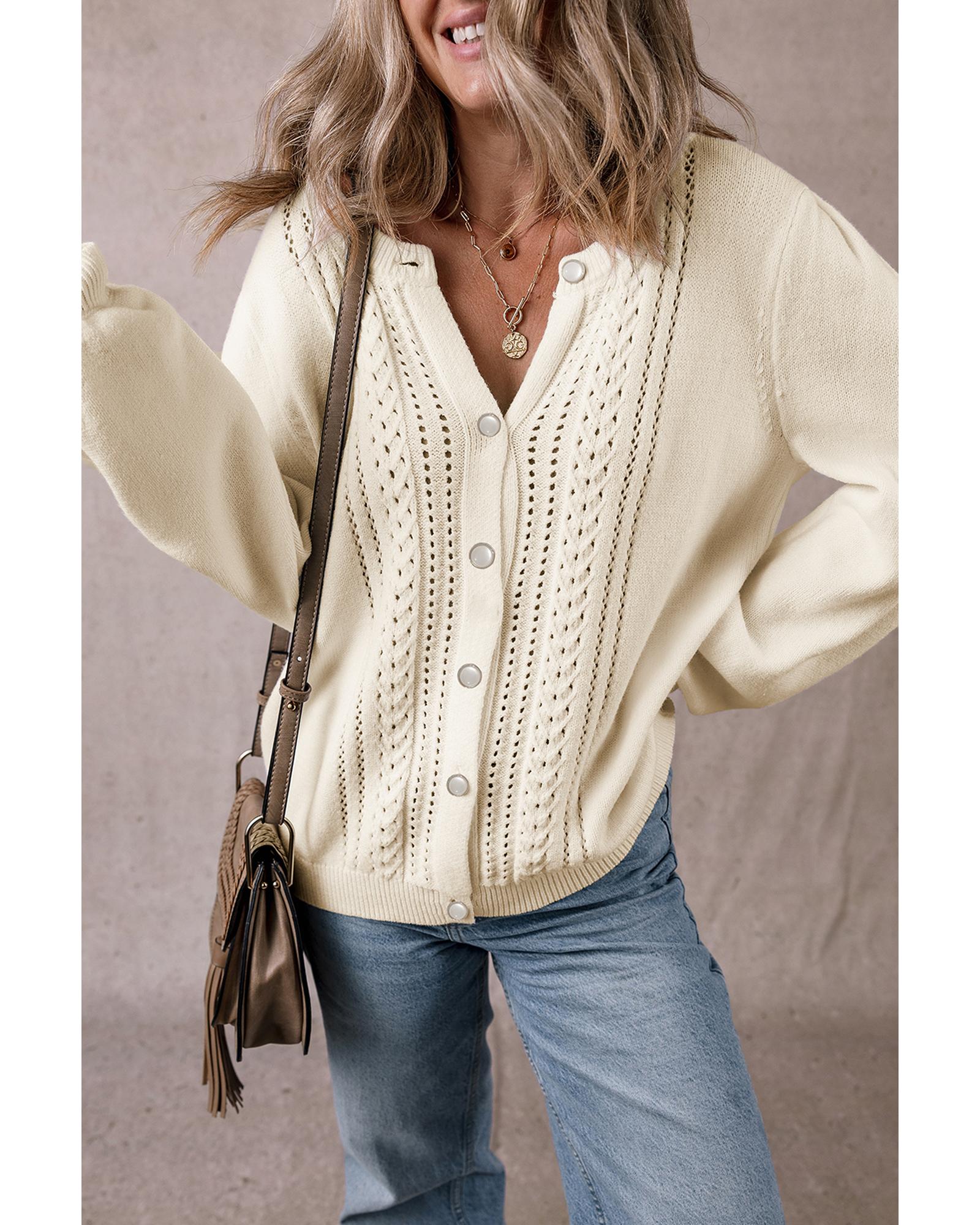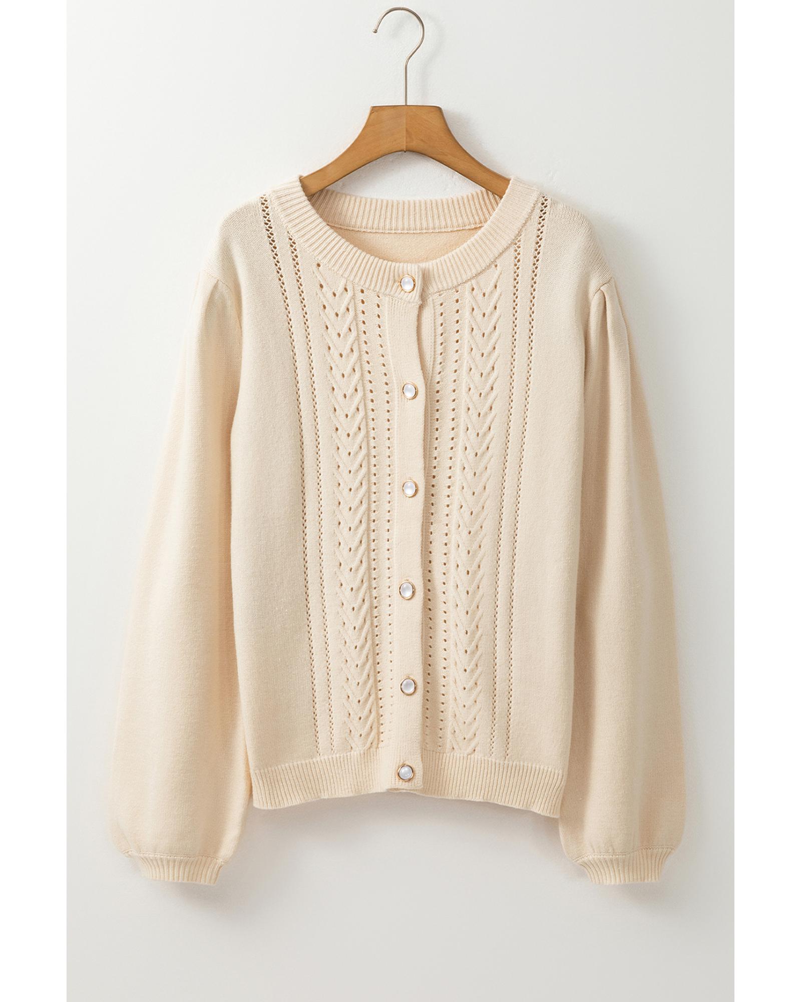 - Apricot pleated sleeve hollow detail button sweater cardigan