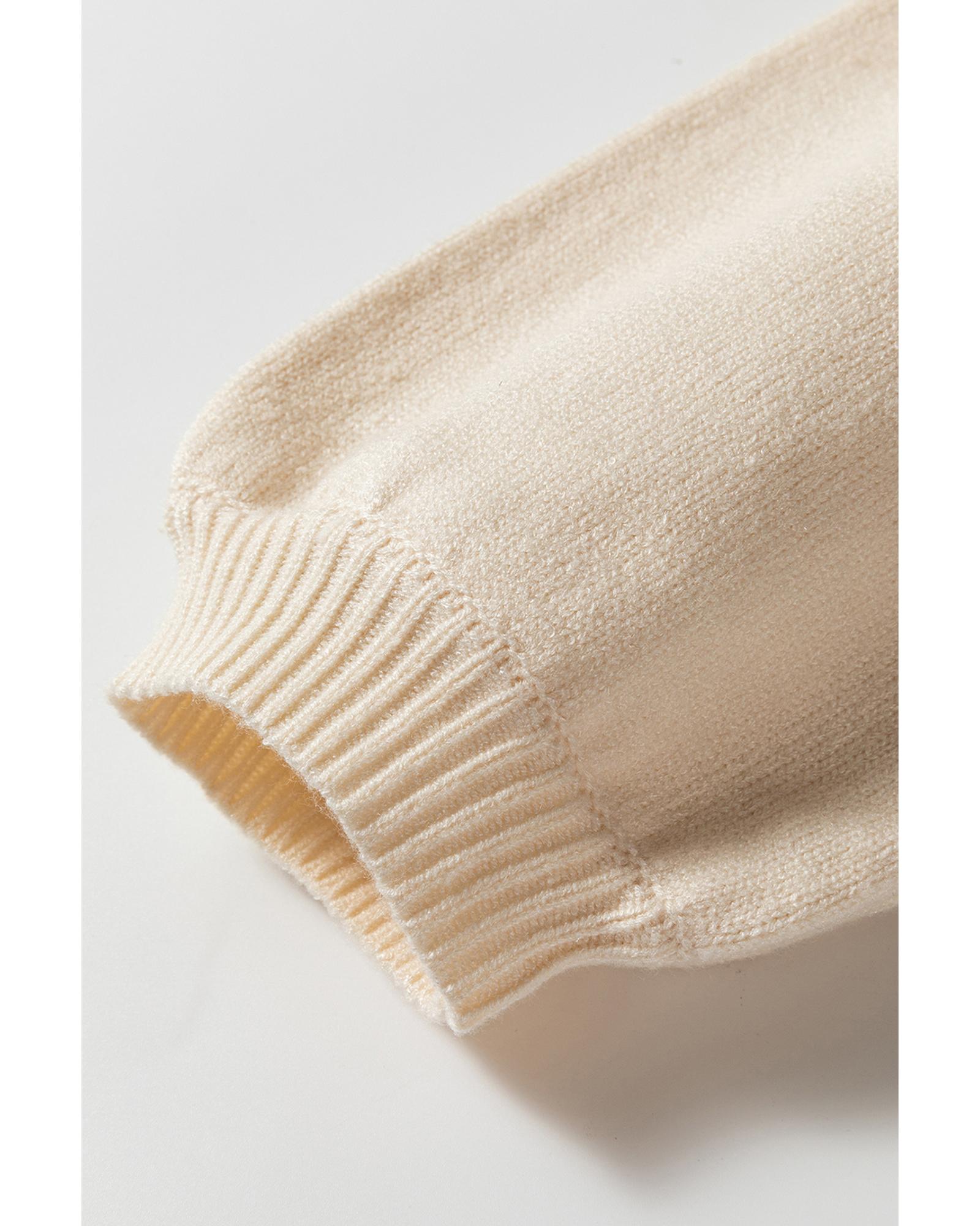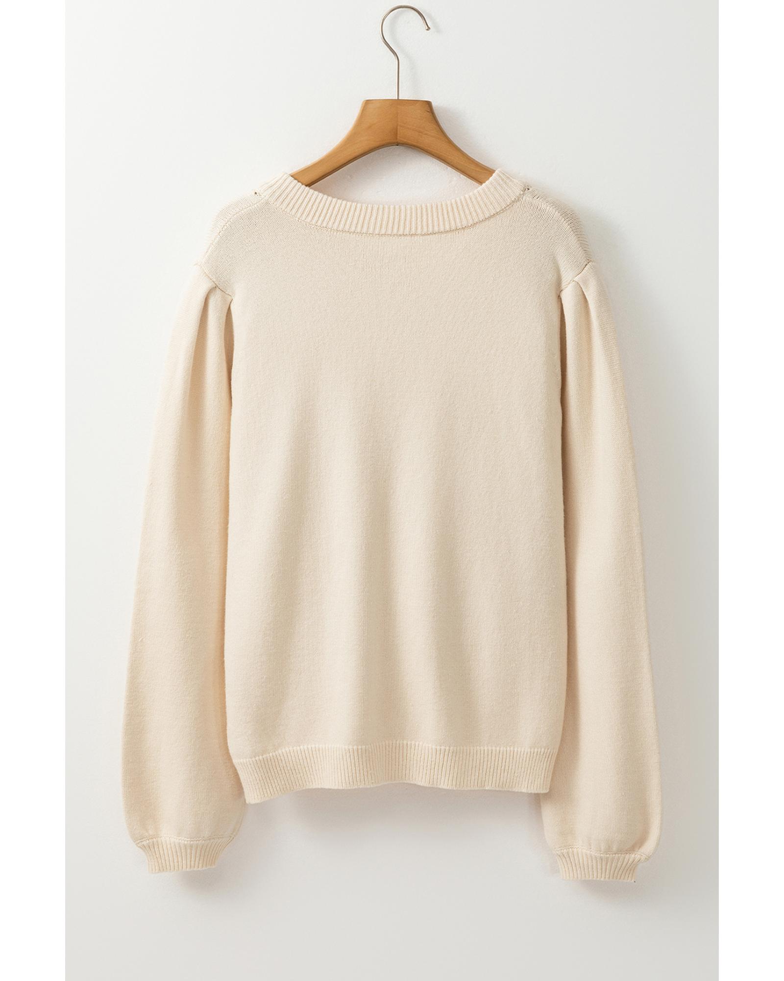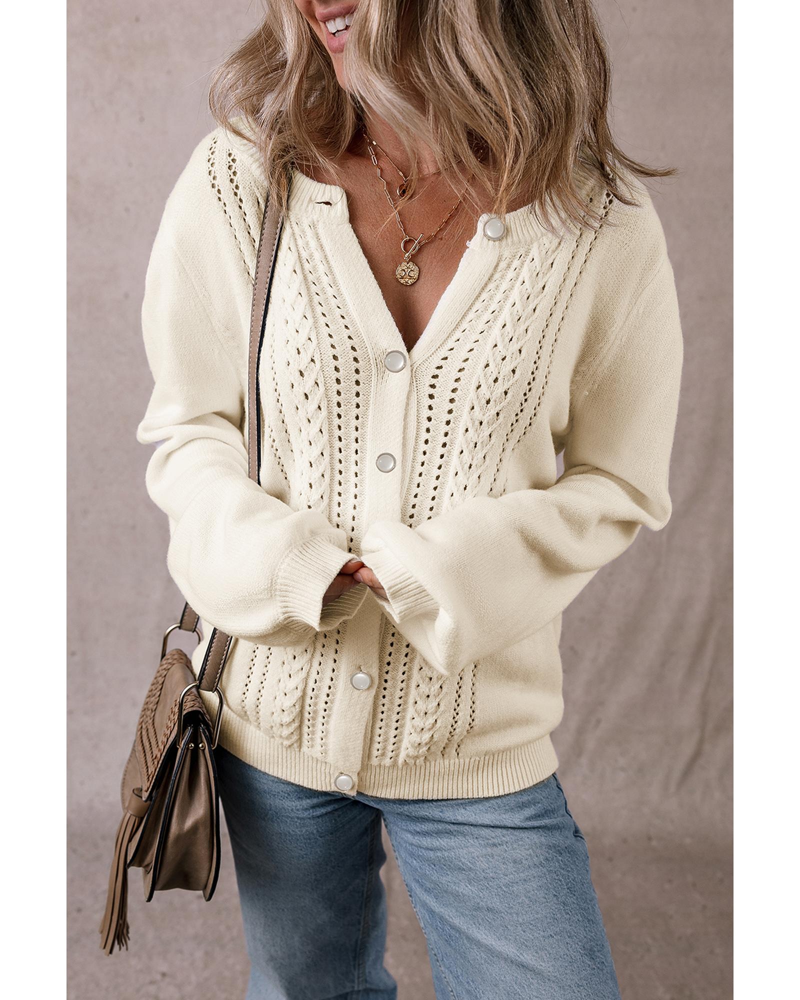 - Apricot pleated sleeve hollow detail button sweater cardigan