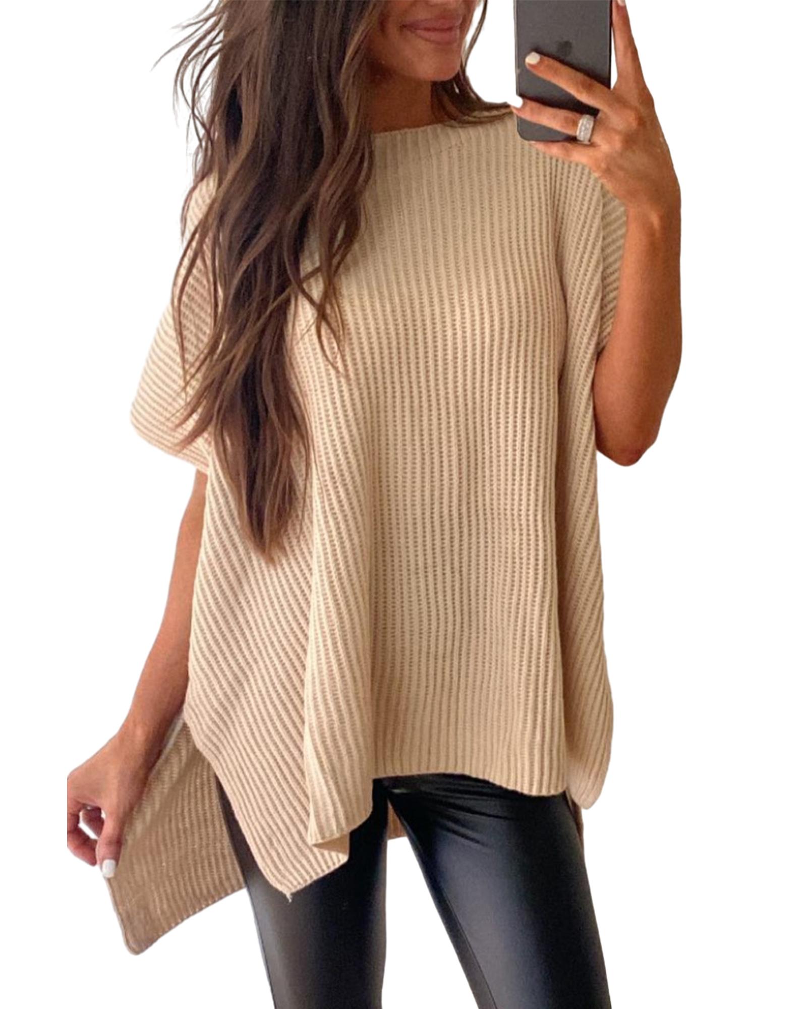 Apricot Short Sleeve Side Slit Oversized Sweater – M