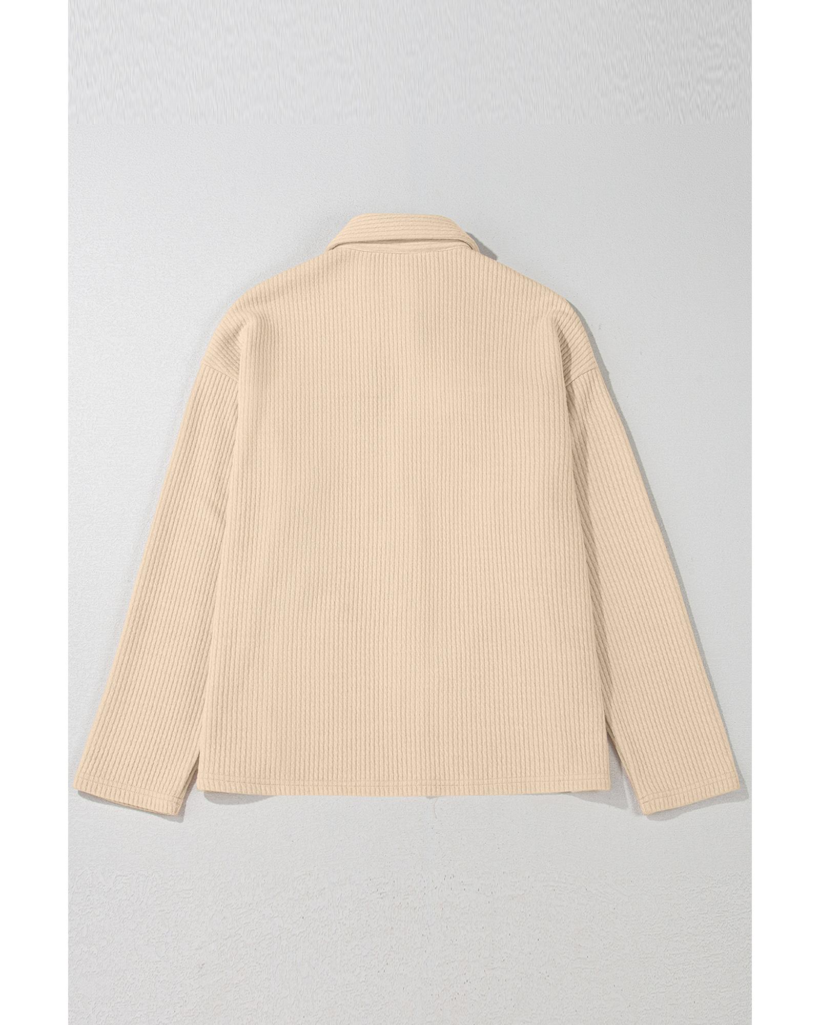 Apricot Solid Color Corduroy Buttoned Long Sleeve Shacket – M
