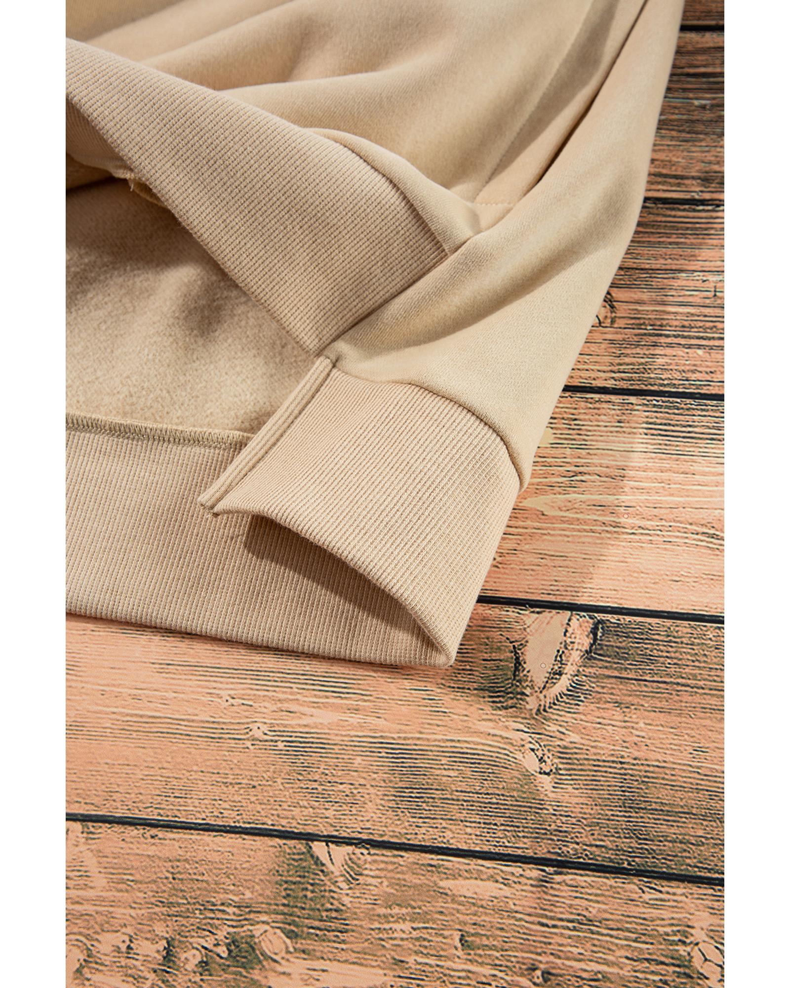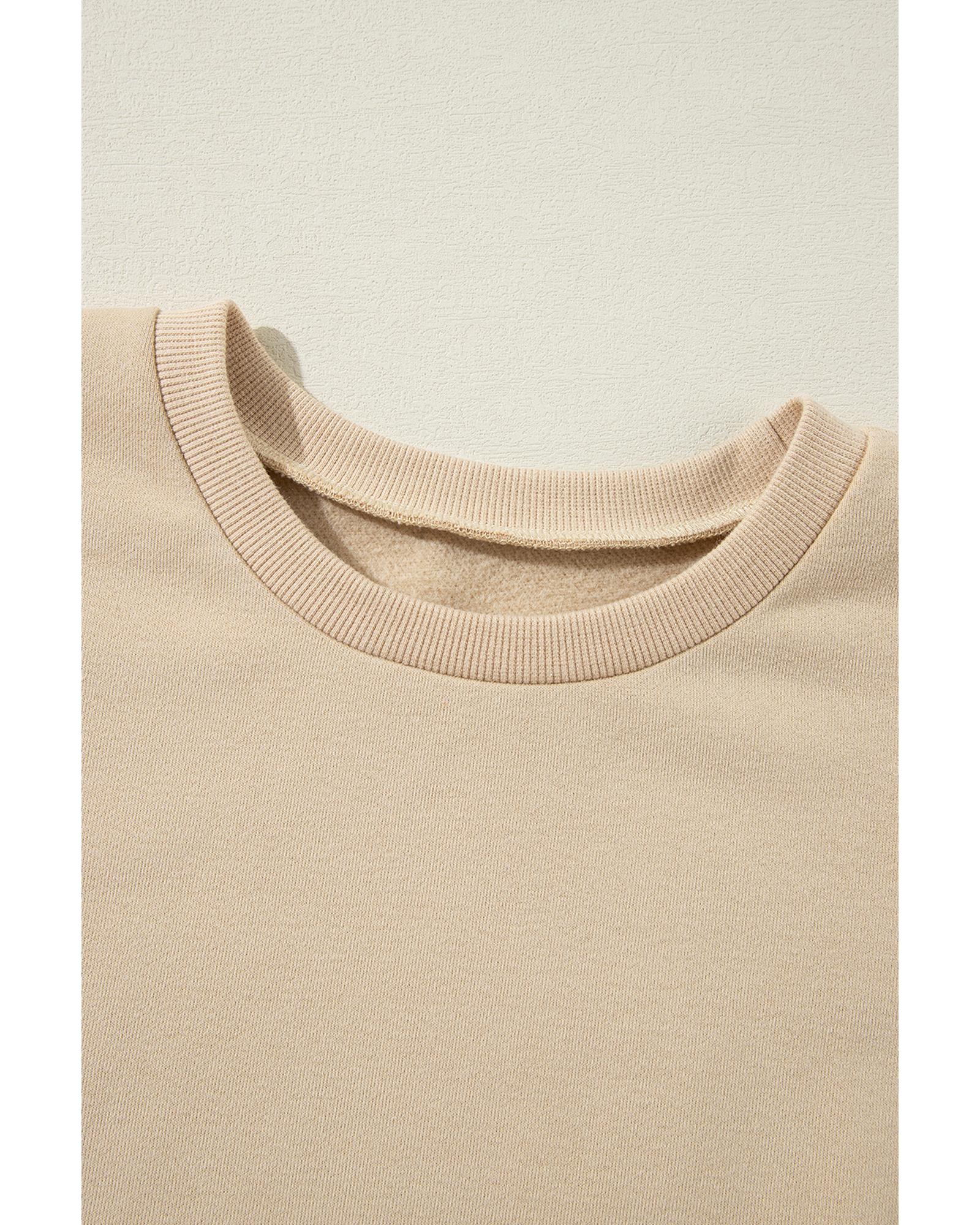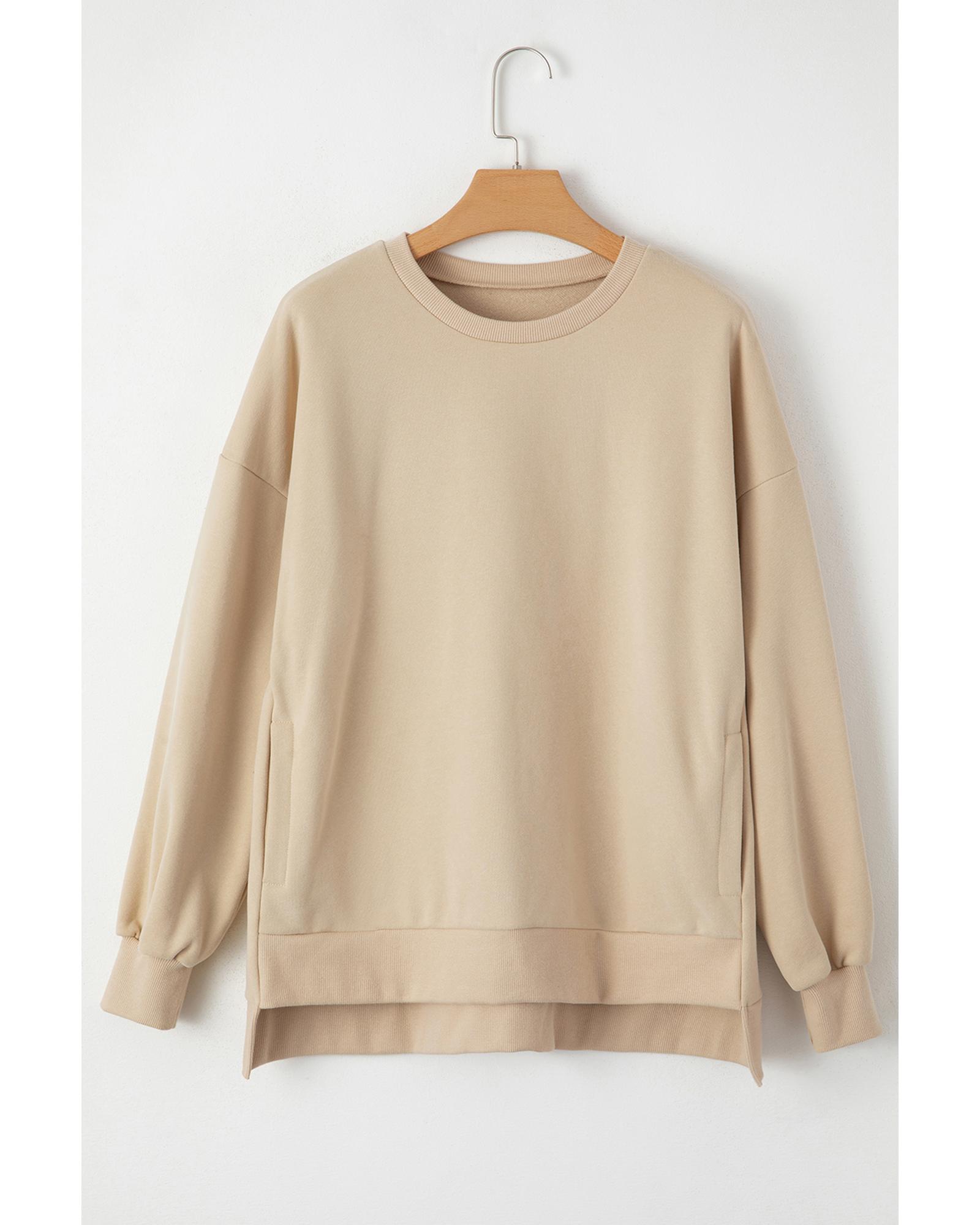Apricot Solid Fleece Lined Drop Shoulder High Low Sweatshirt – L