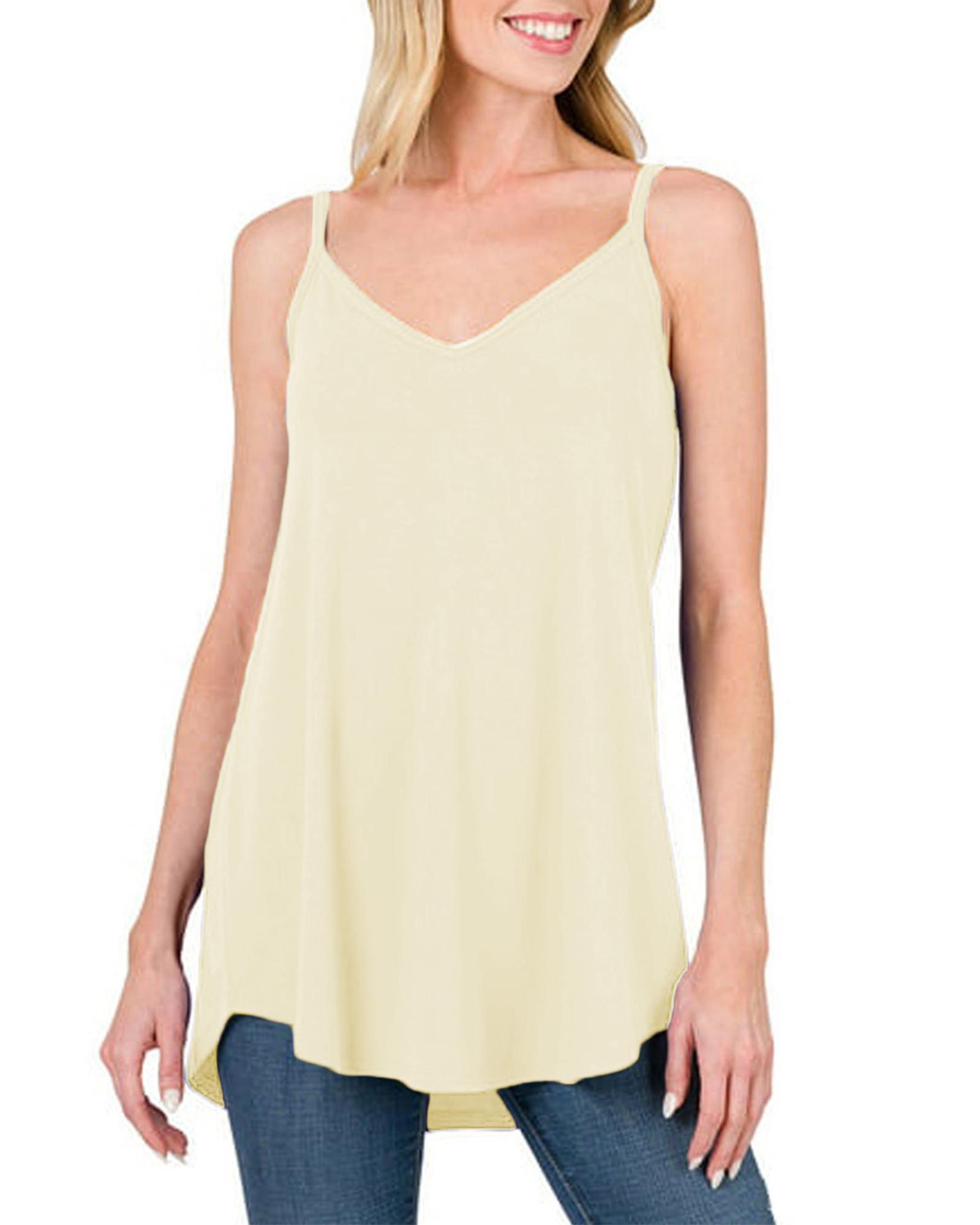 Apricot Spaghetti Strap V-Neck Flowy Tunic Tank Top – M