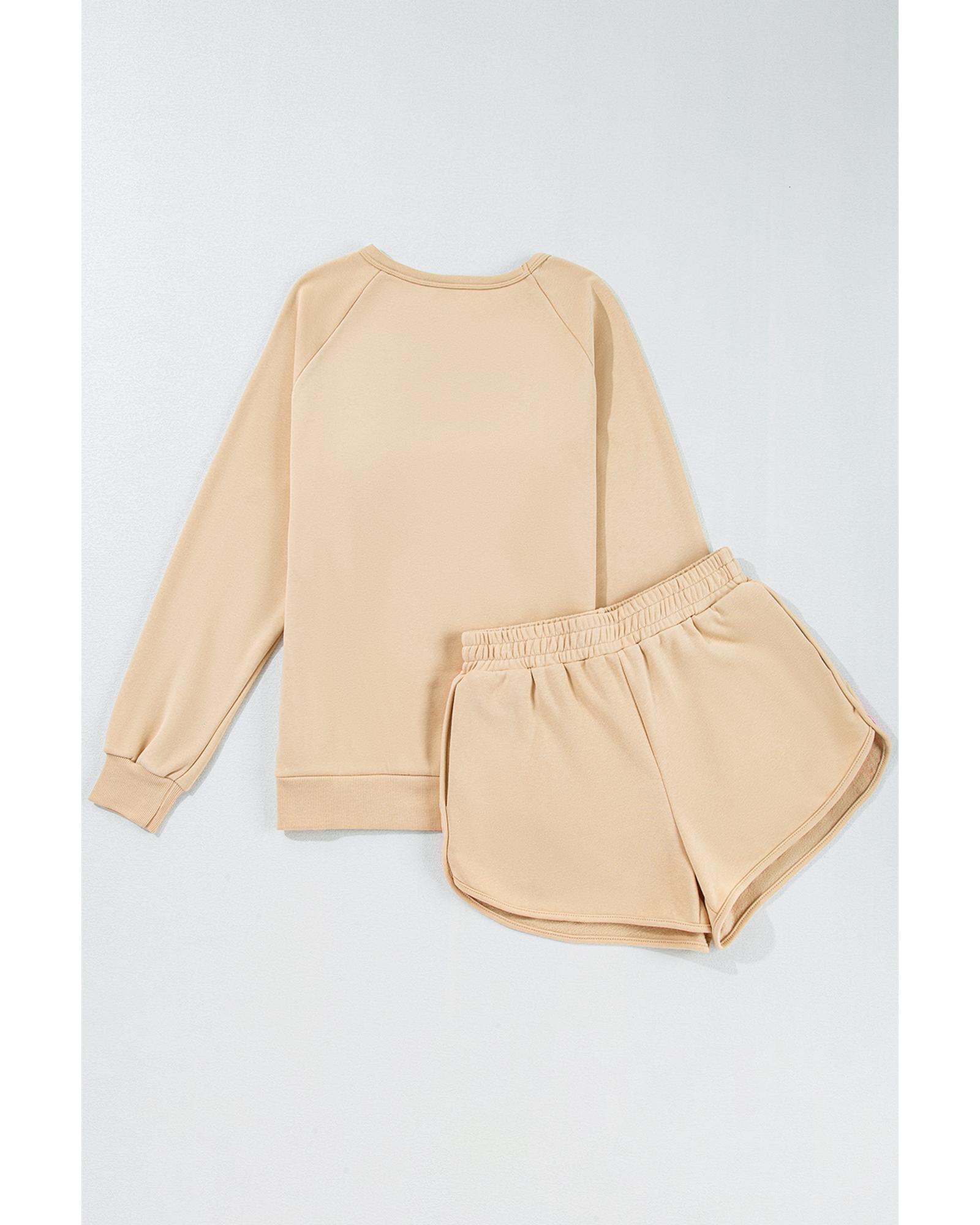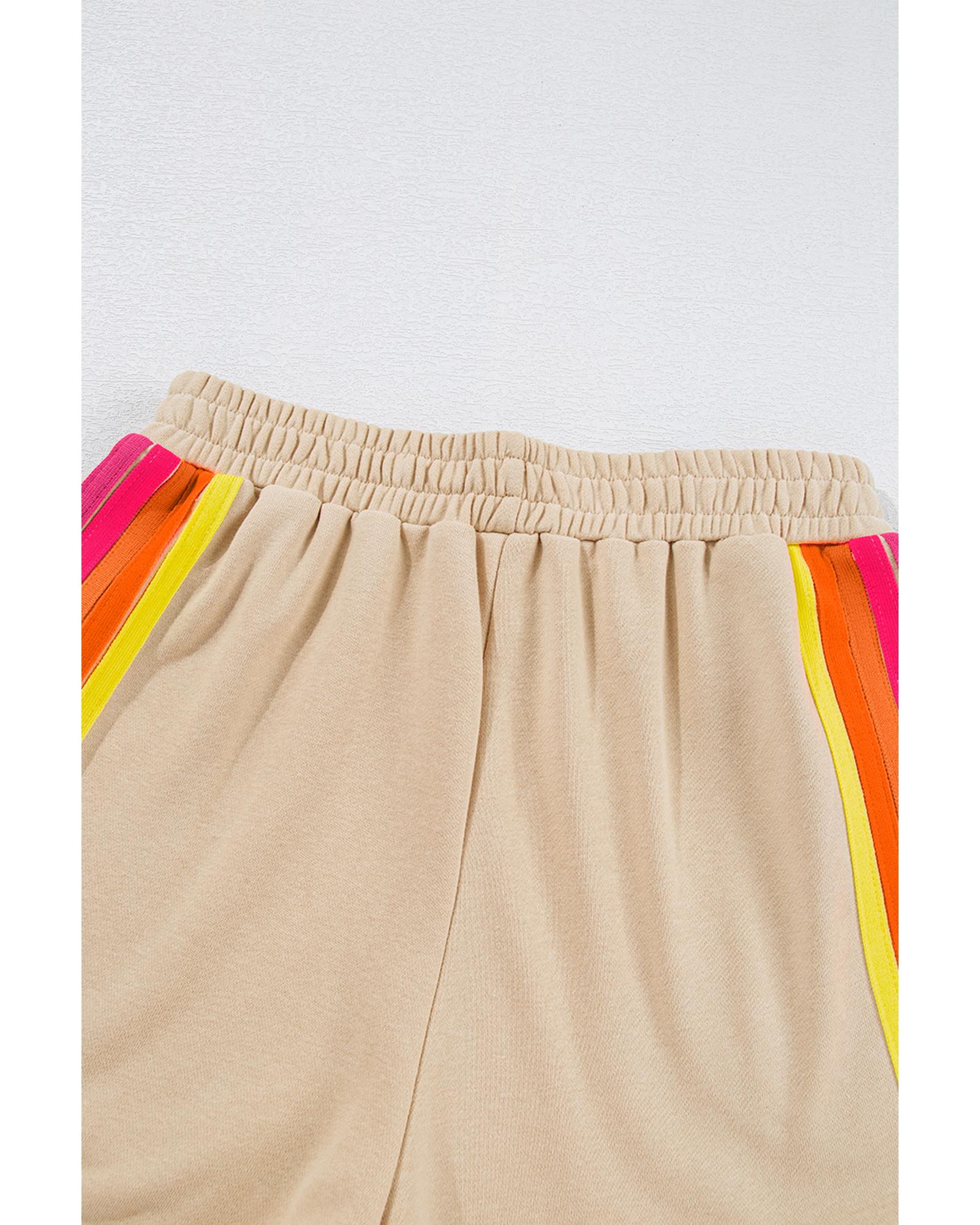 Apricot Striped Accent Pullover and Shorts Two Piece Casual Set – M