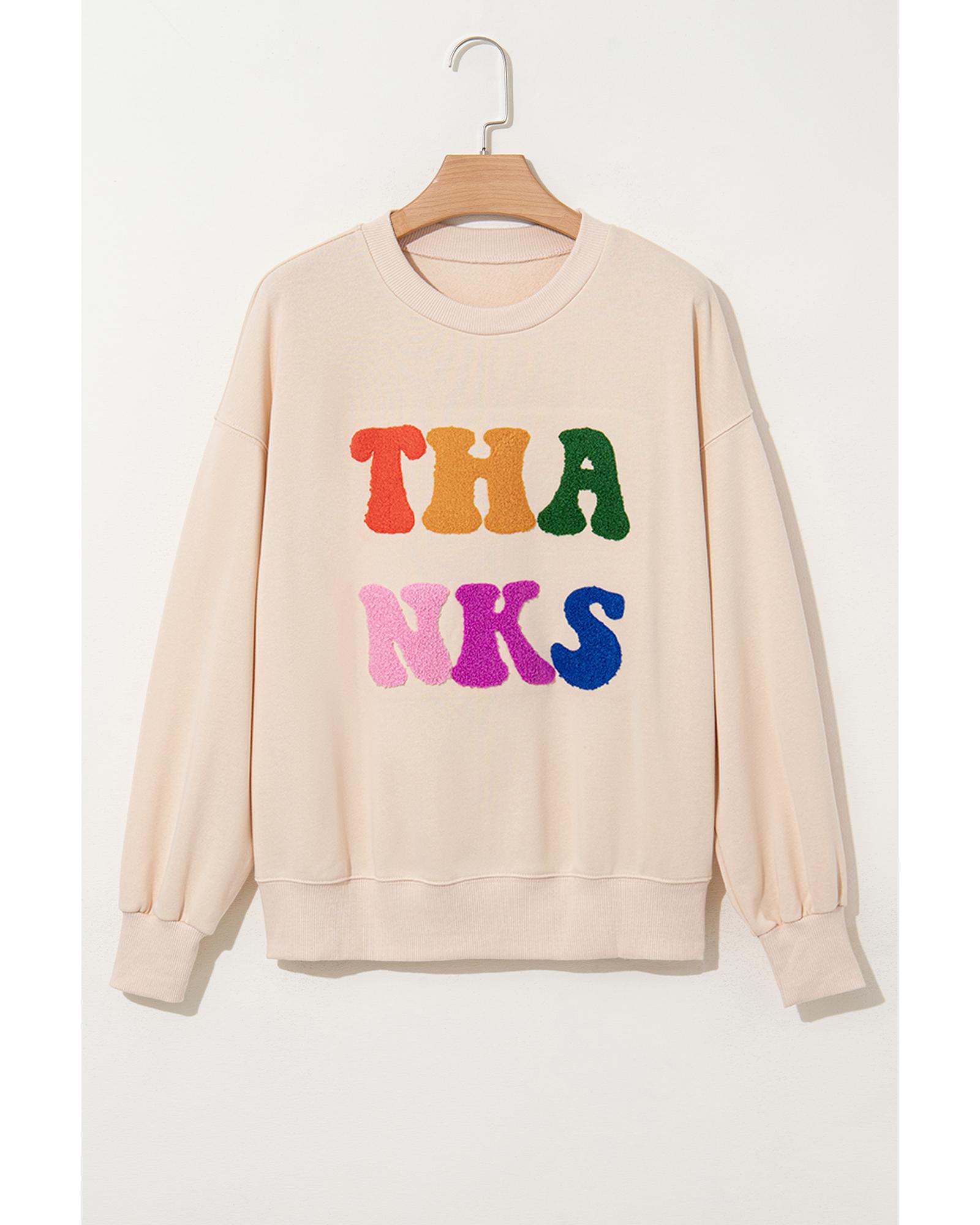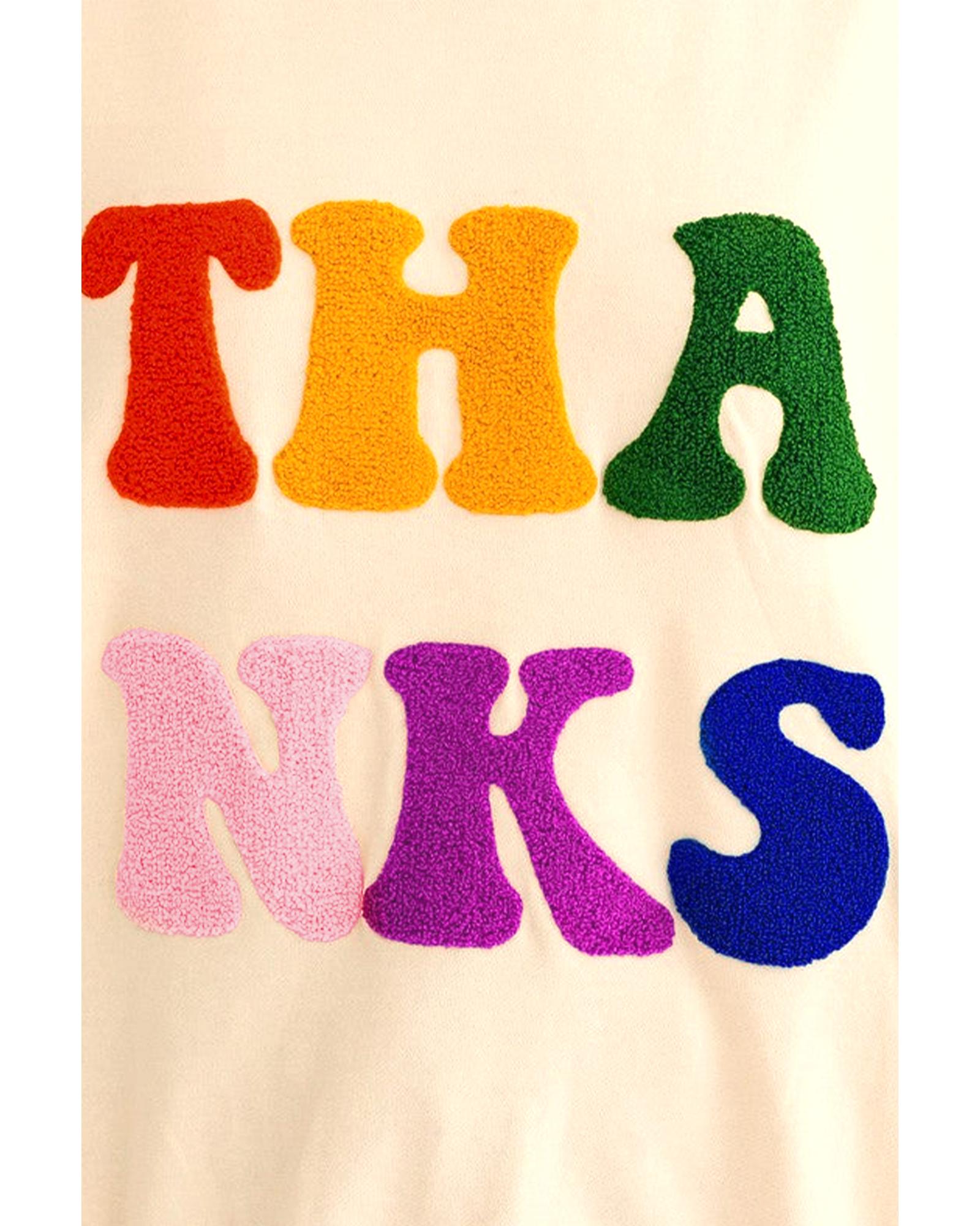 Apricot THANKS Chenille Embroidered Drop Shoulder Graphic Sweatshirt – S