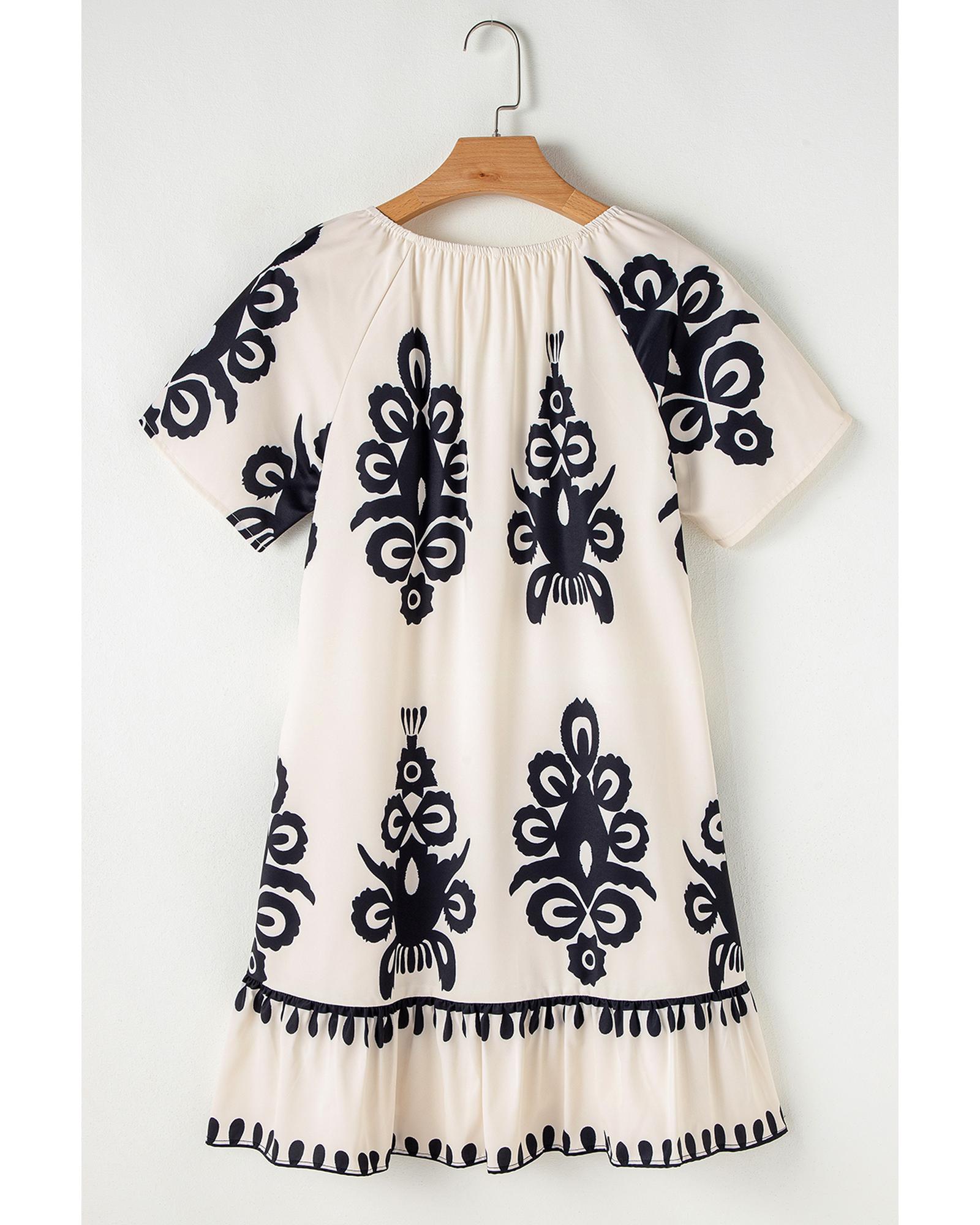 Apricot Western Print Ruffled Short Sleeve Loose Dress – XL