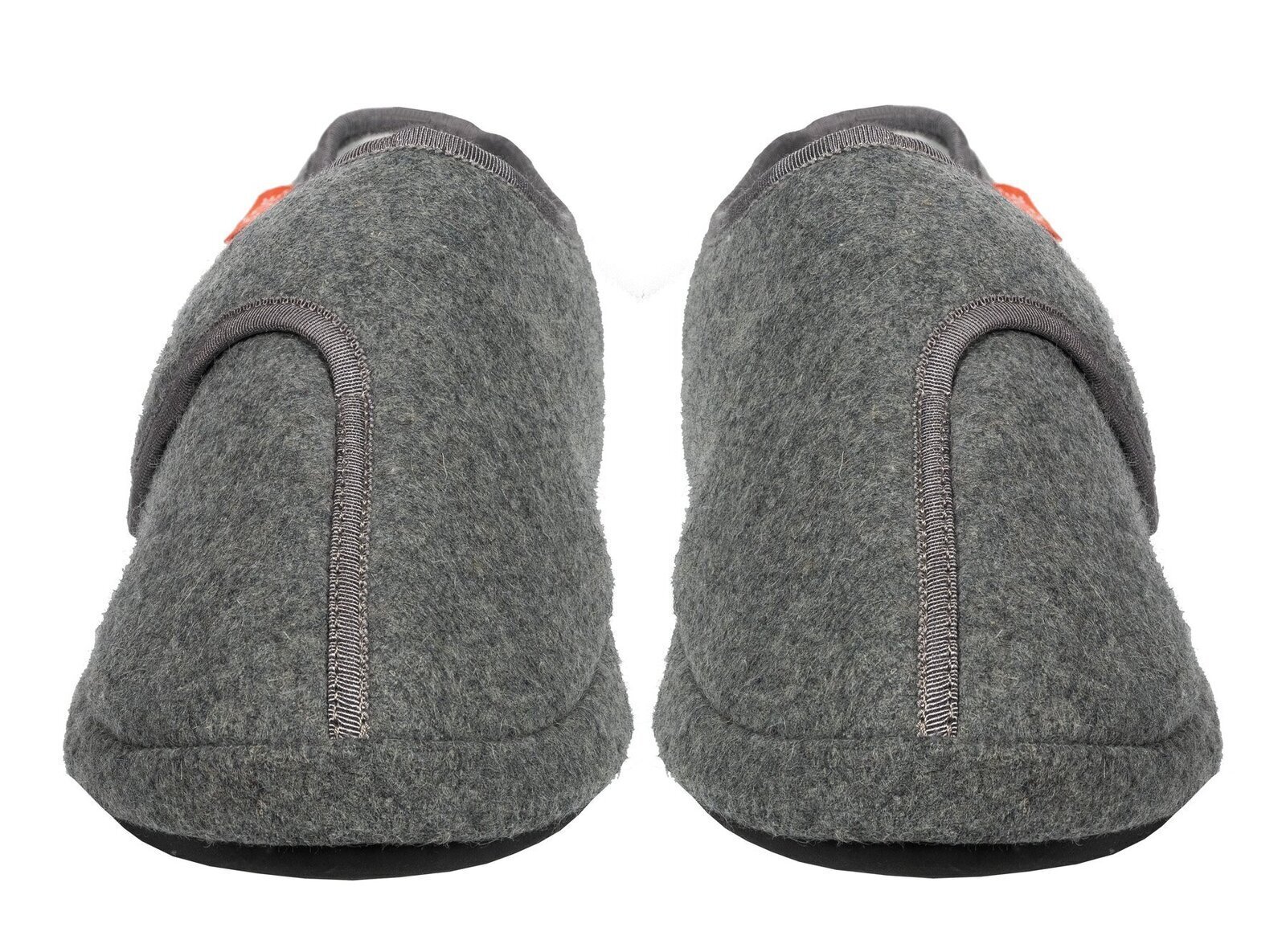 The Plus Slippers have an adjustable Velcro closure at the front of the shoe. Ideal for narrow and wide feet or flexibility challenged wearers.