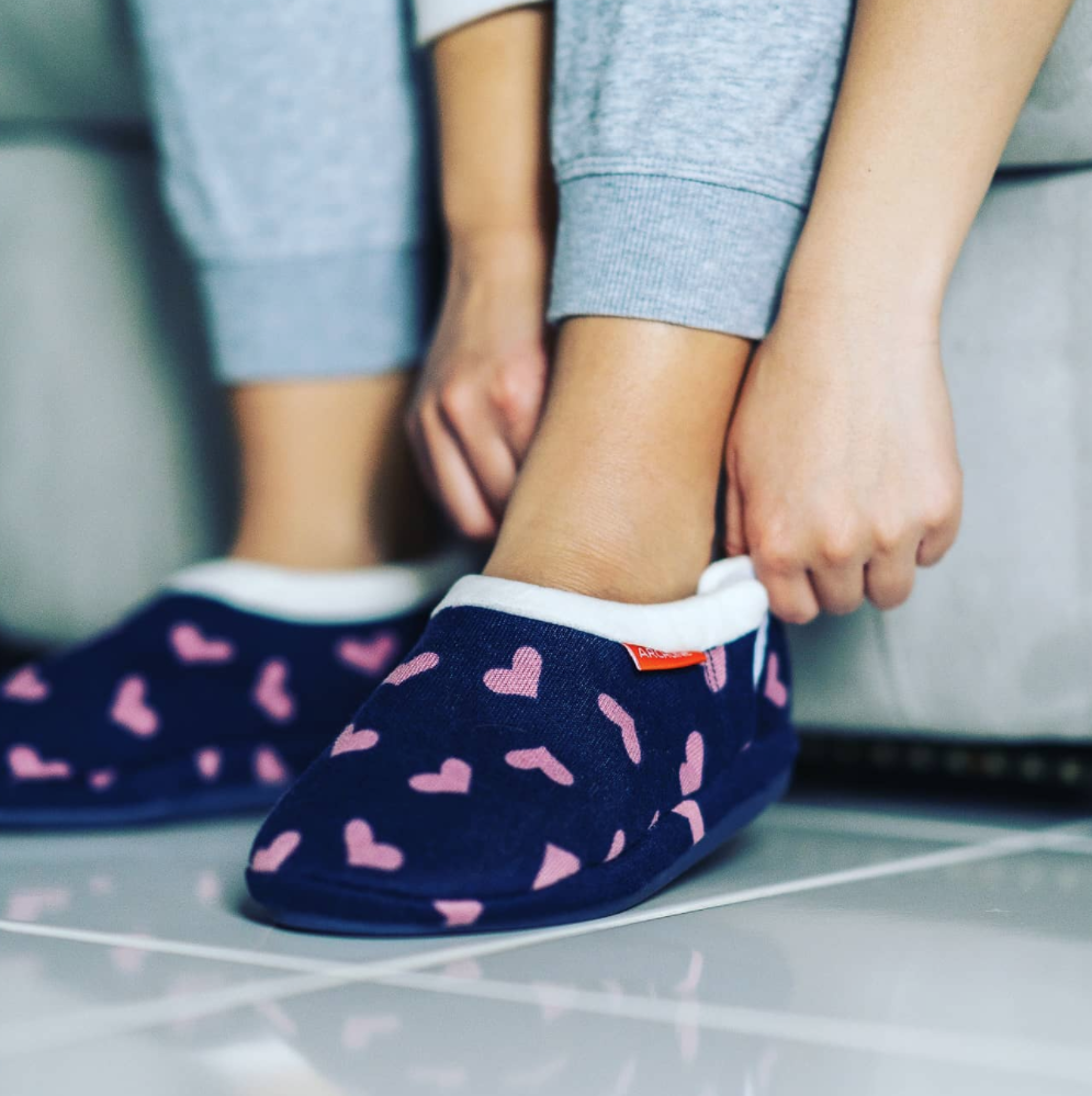ARCHLINE Orthotic Slippers CLOSED Arch Scuffs Moccasins Pain Relief in Navy Hearts - EUR37