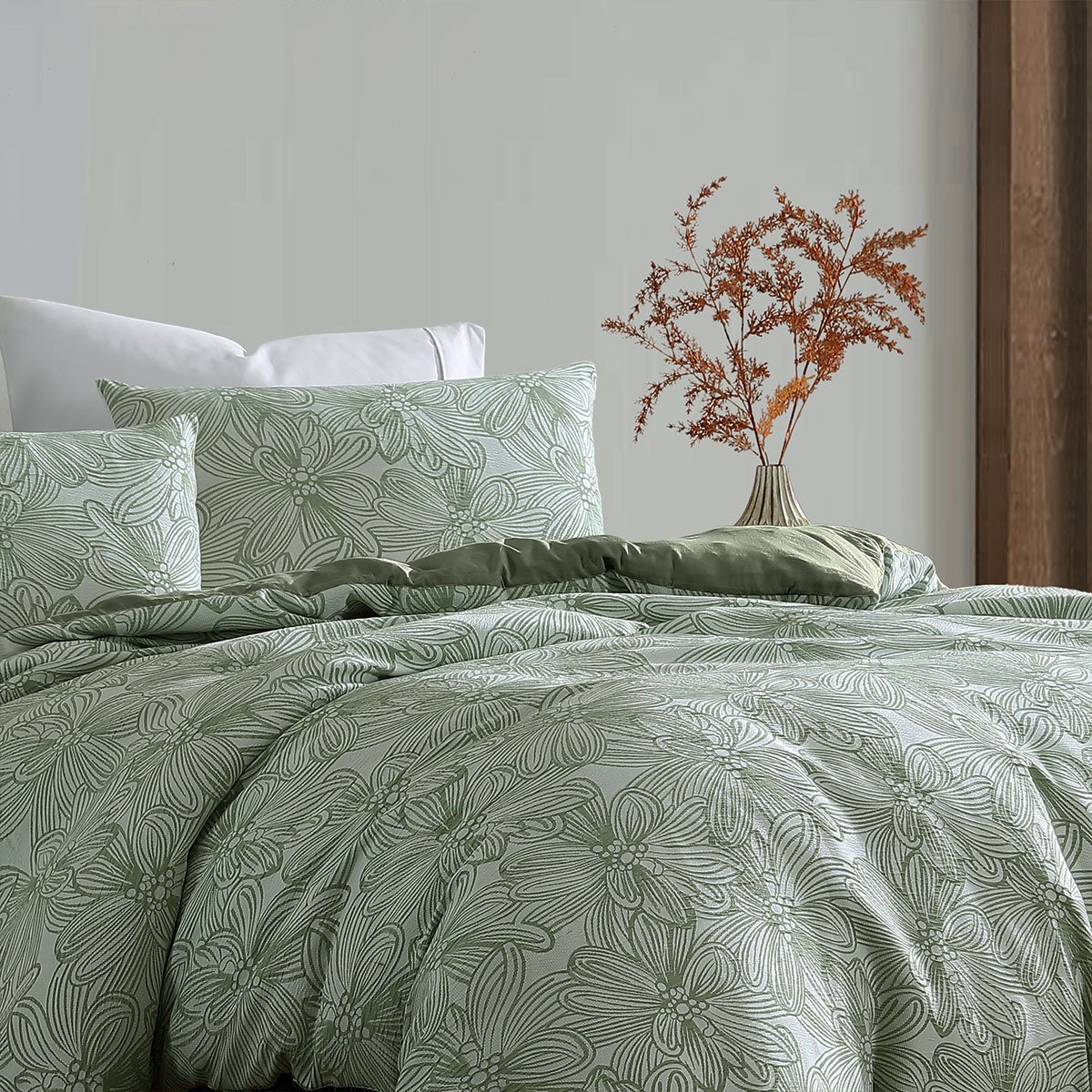 Ardor Avena Green Textured Floral Jacquard Quilt Cover Set Queen
