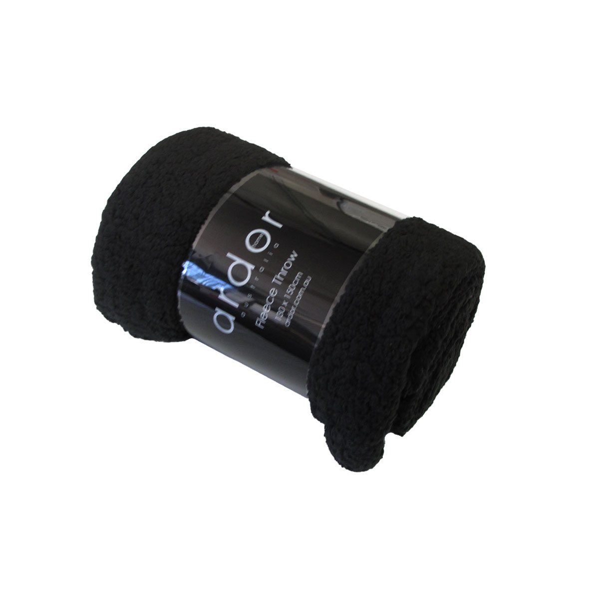 Ardor Lupinia Black Sherpa Fleece Throw Rug 130 x 150cm