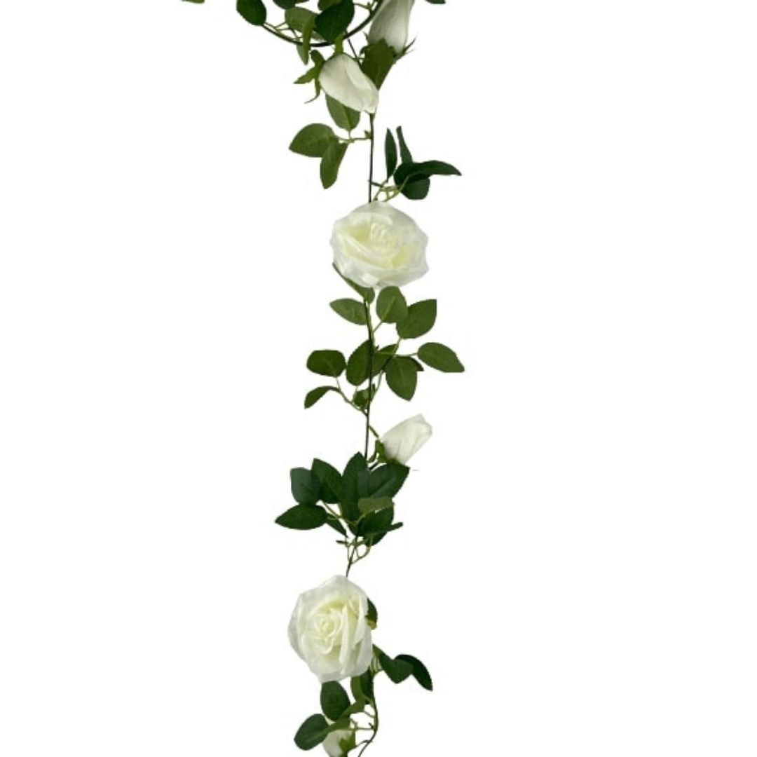 Fresh blooms are always a welcome addition to any wedding day, but sometimes it can be tricky to find the right flowers at the right price. If youre looking for ways to add rustic charm to your special day, this faux rose garland is just the thing! A beautifully dainty and crisp white rose garland that is easy to use can be wrapped around banisters or laid across tables. This artificial flower garland is a perfect choice for decorating your home, garden, wedding party, or other special occasions. The string of faux roses blooms paired with delicate tendrils of green leaves. Rustic and romantic, the garland is ideal for creating a warm atmosphere and making you feel happy.