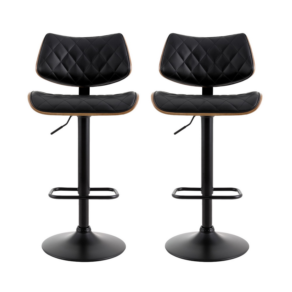 Artiss 2x Bar Stools Kitchen Dining Chairs Gas Lift Stool Wooden Leather Black