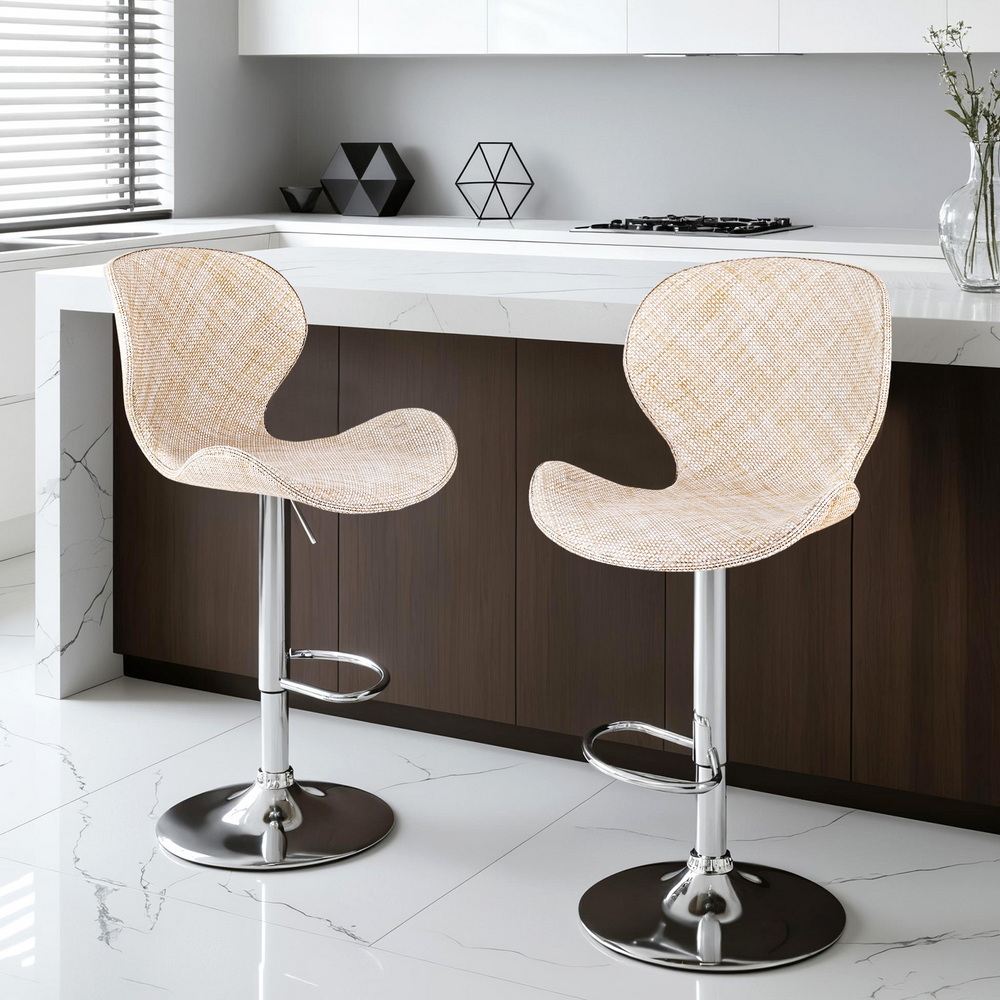Experience superior comfort with a curved wing design and a premium PE rattan seat. The height is adjustable (90-112cm) using a durable gas lift cylinder, while the sturdy metal construction ensures a 120kg capacity per stool. The semi-circular footrest ring improves stability and relaxation. Anti-slip floor protectors prevent scratches, making these stools perfect for both indoor and outdoor use.