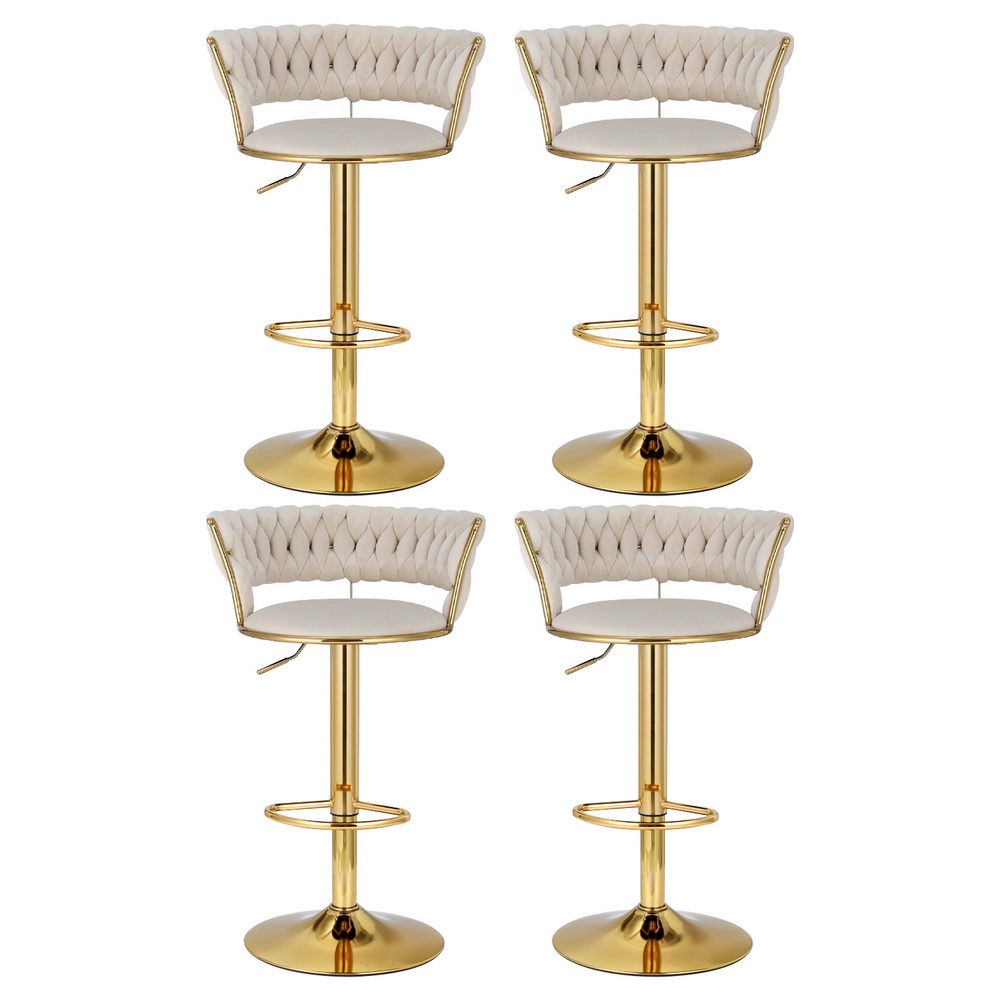 Artiss 4x Bar Stools Gas Lift Velvet Woven Backrest Ivory