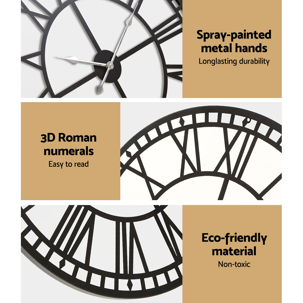 Artiss 60cm Wall Clock Large Roman Numerals Metal Black
